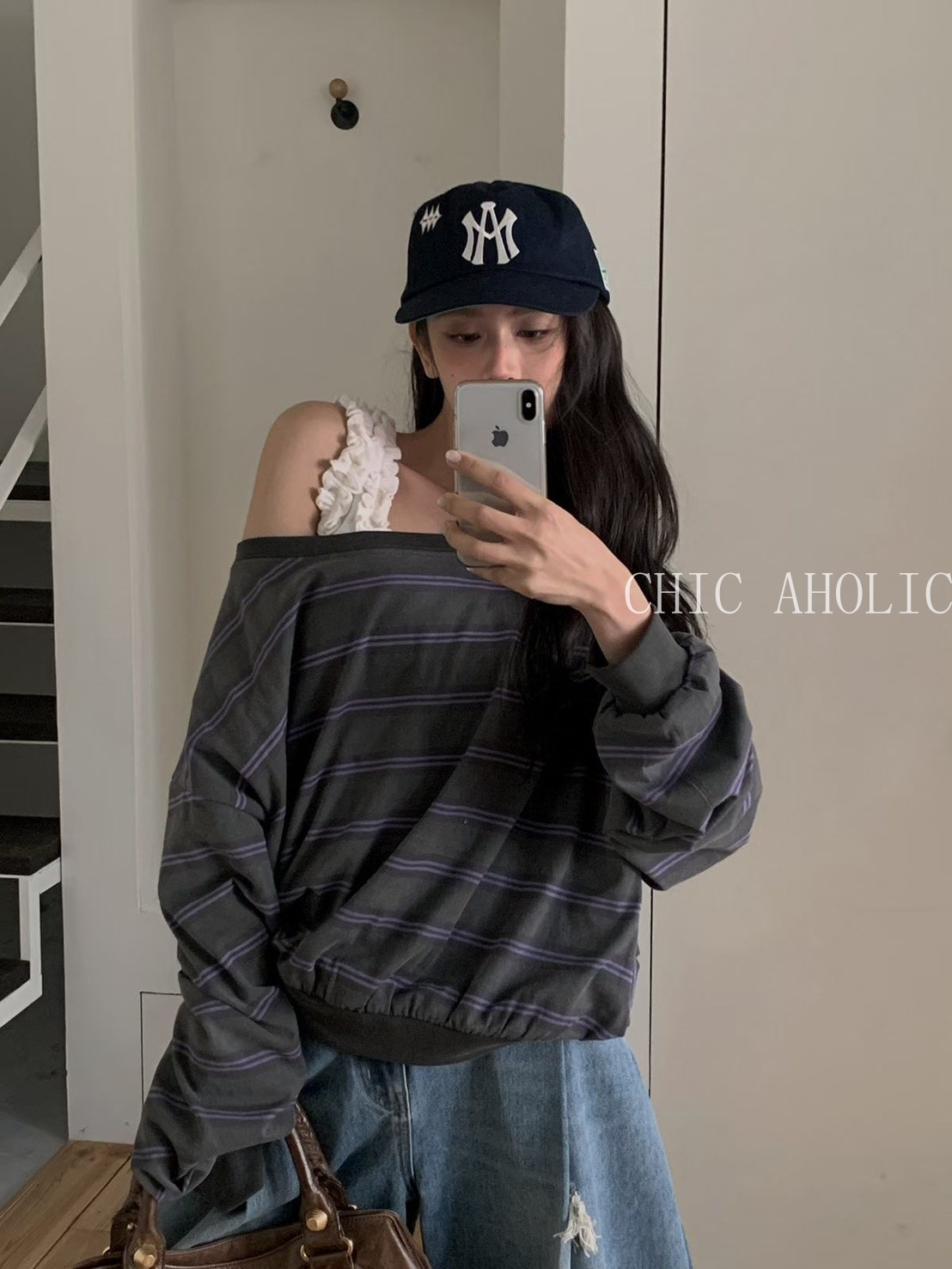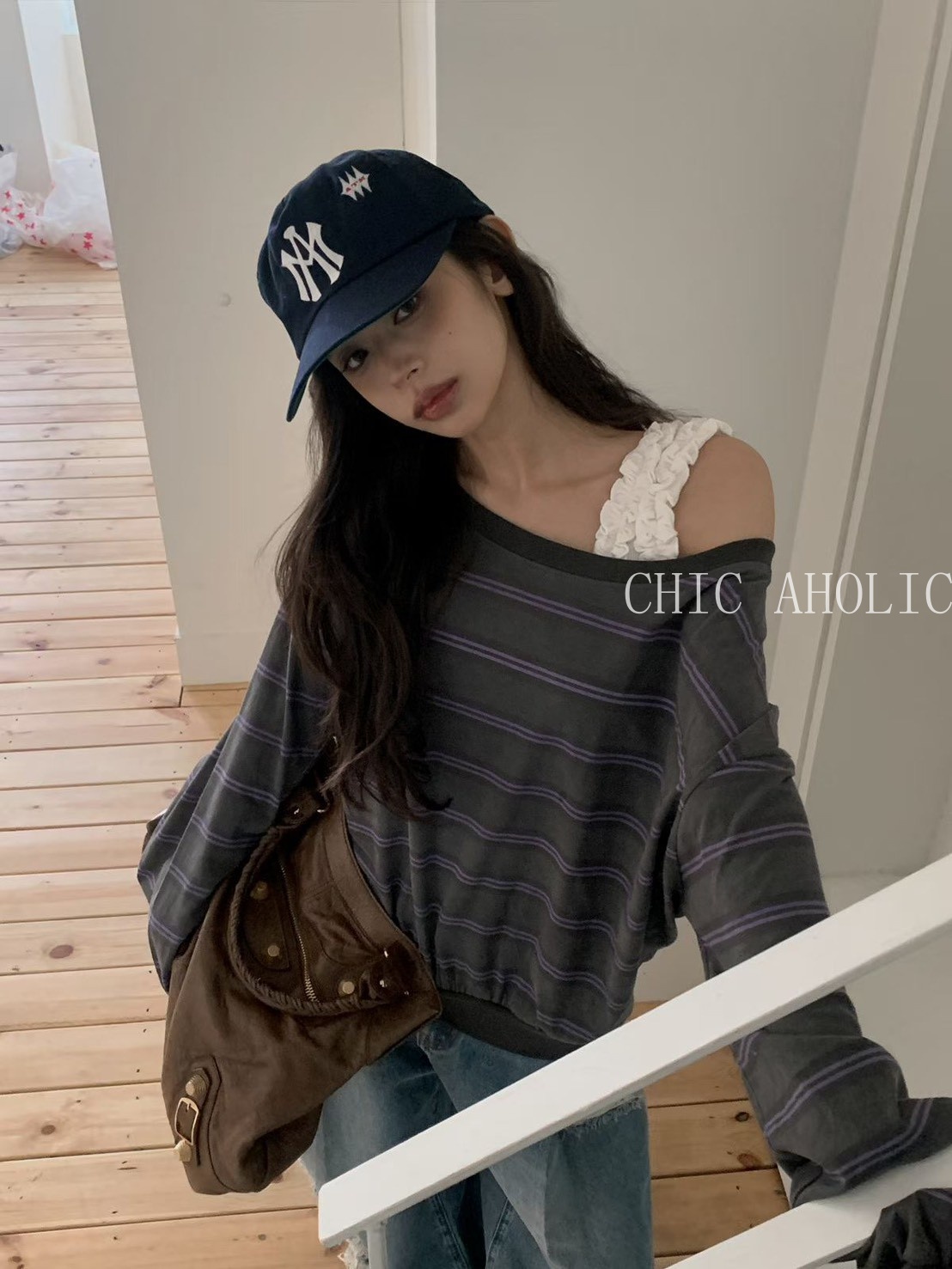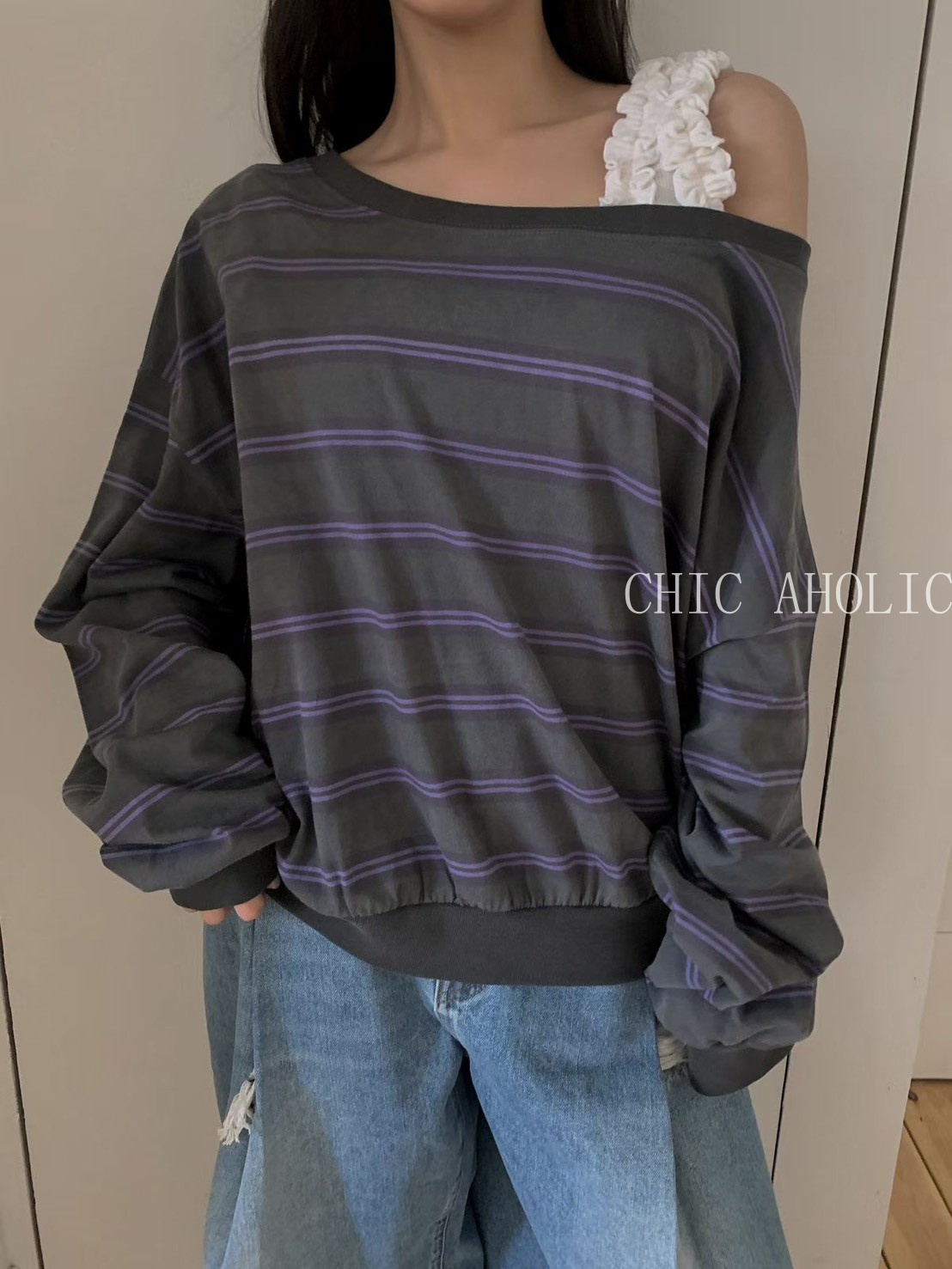 NE32雙白撞色橫條紋上衣