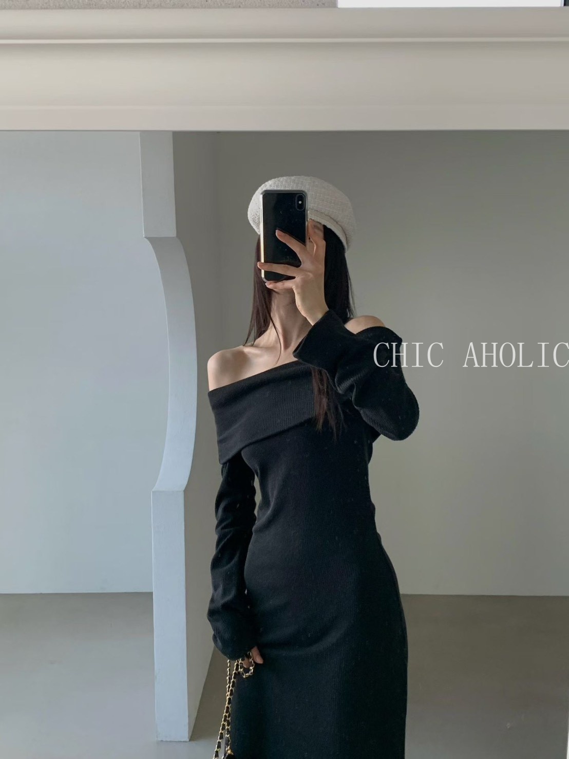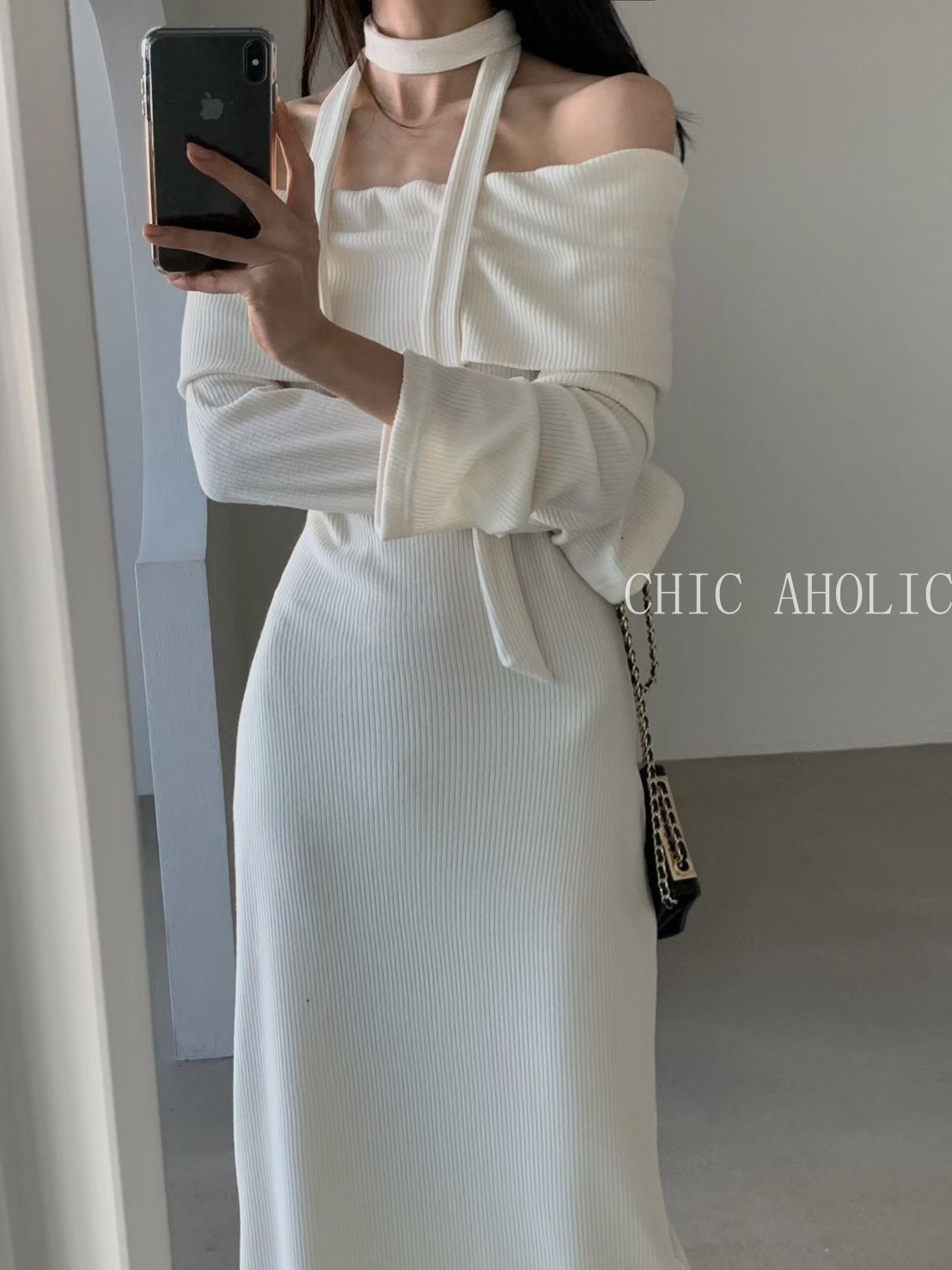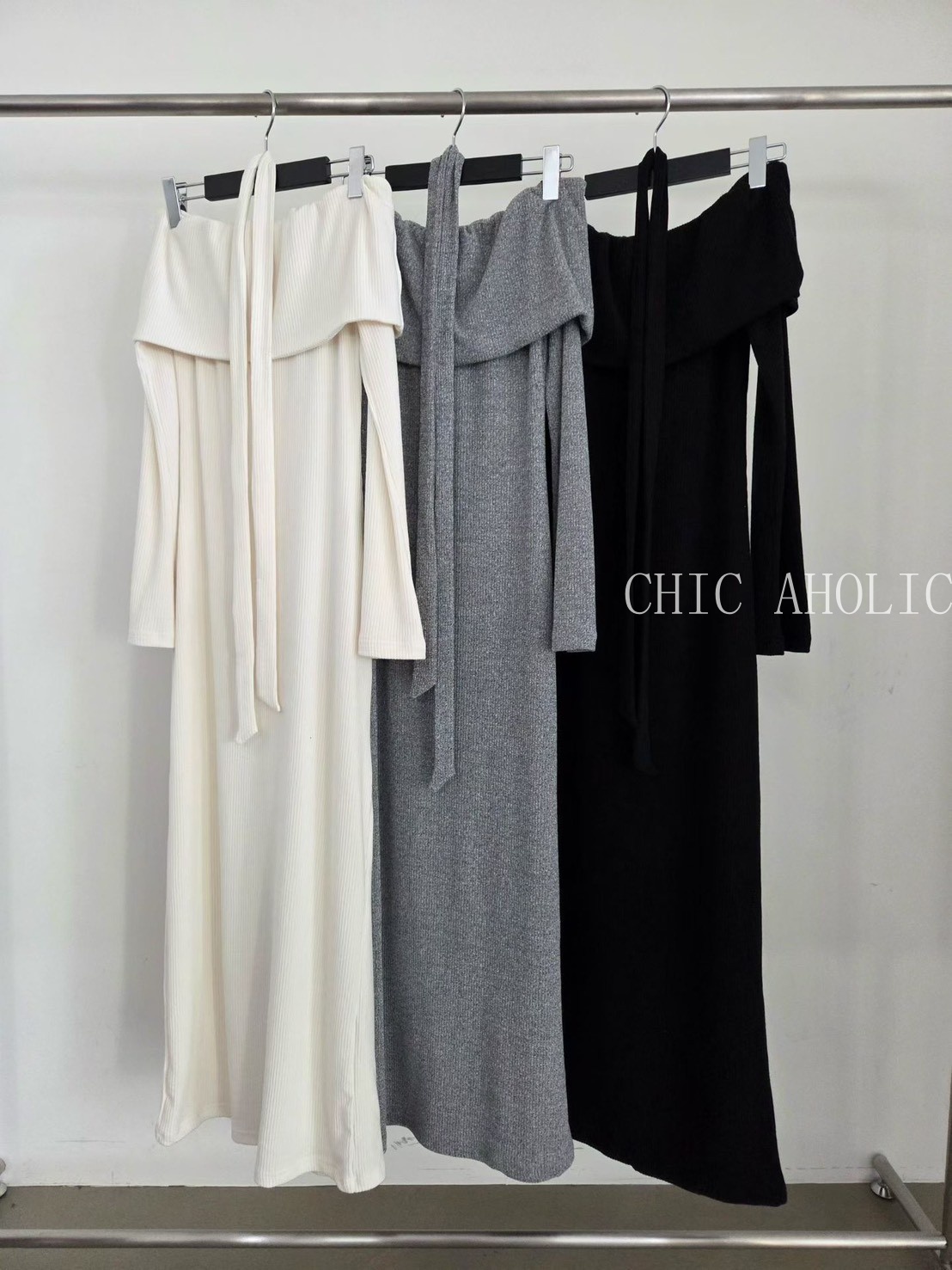 NE59坑條大翻綁脖洋裝