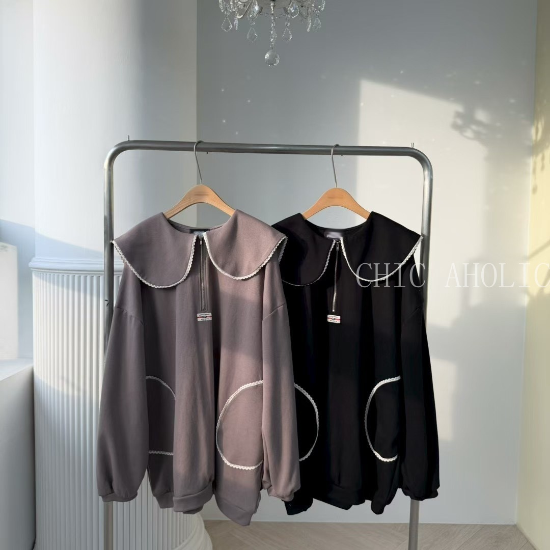MAR15學院領白花邊洋裝