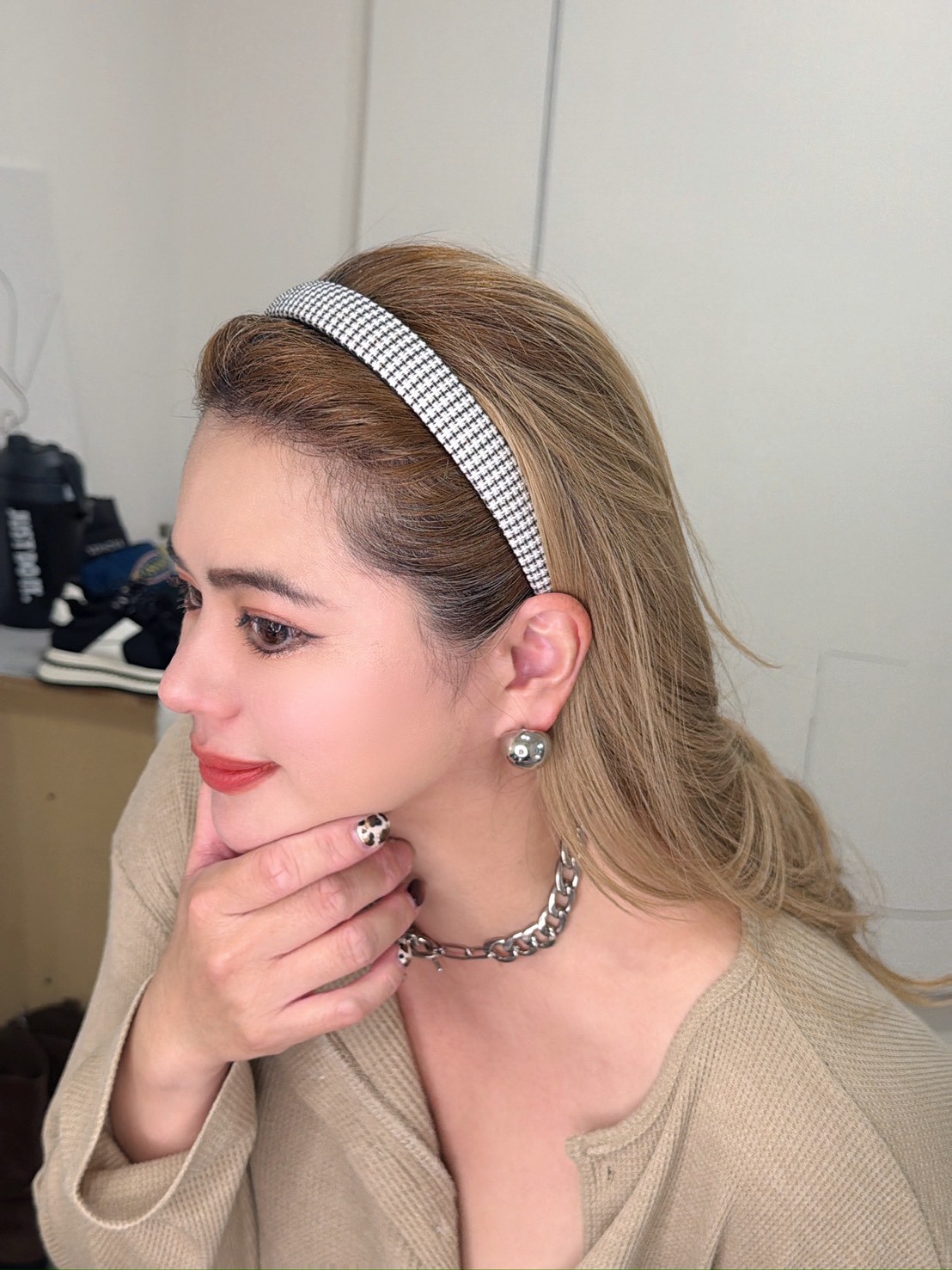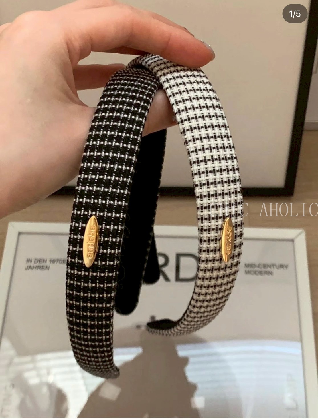 MAR48小香格紋金牌髮箍