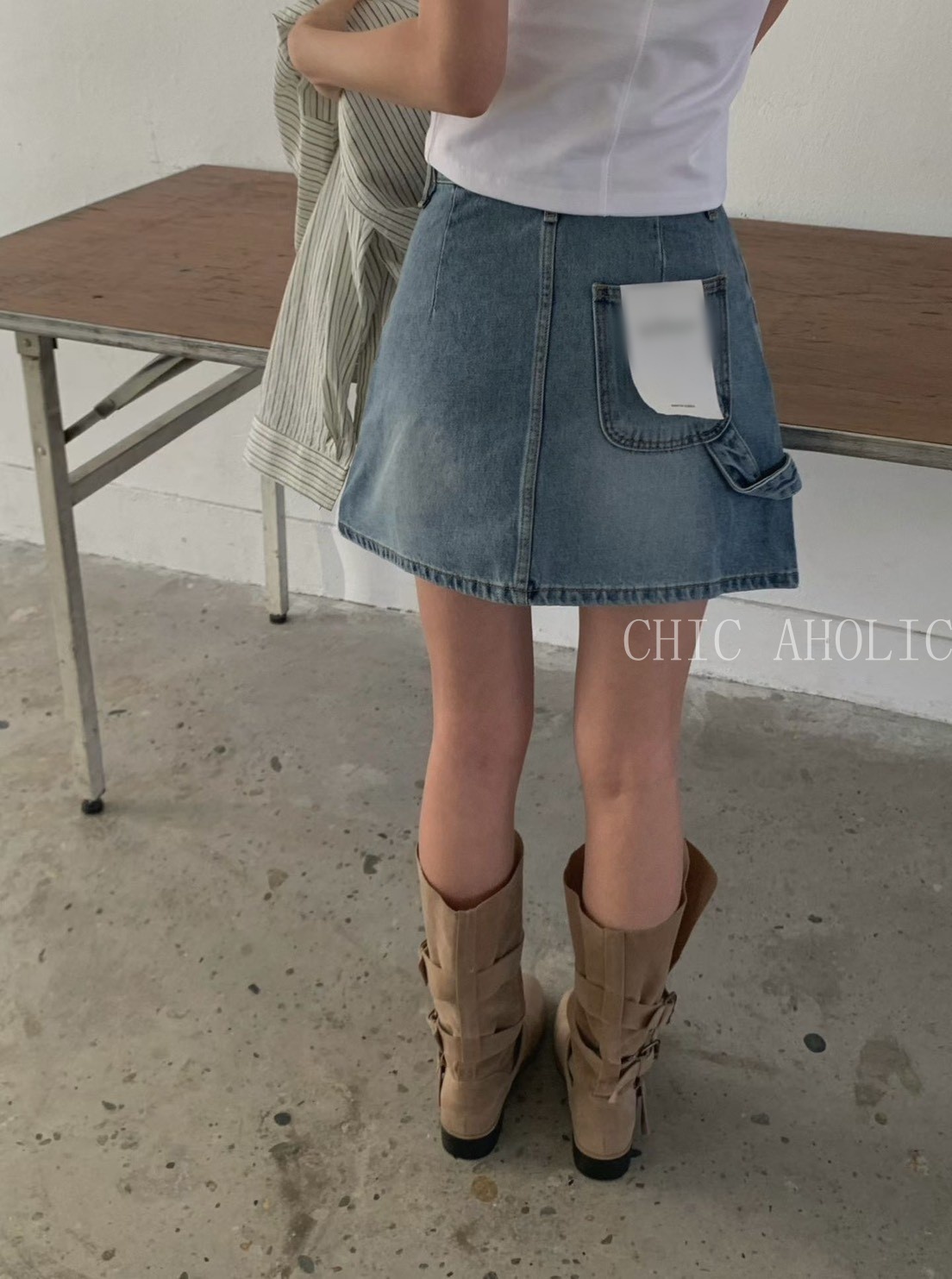 短裙拼接牛仔褲
