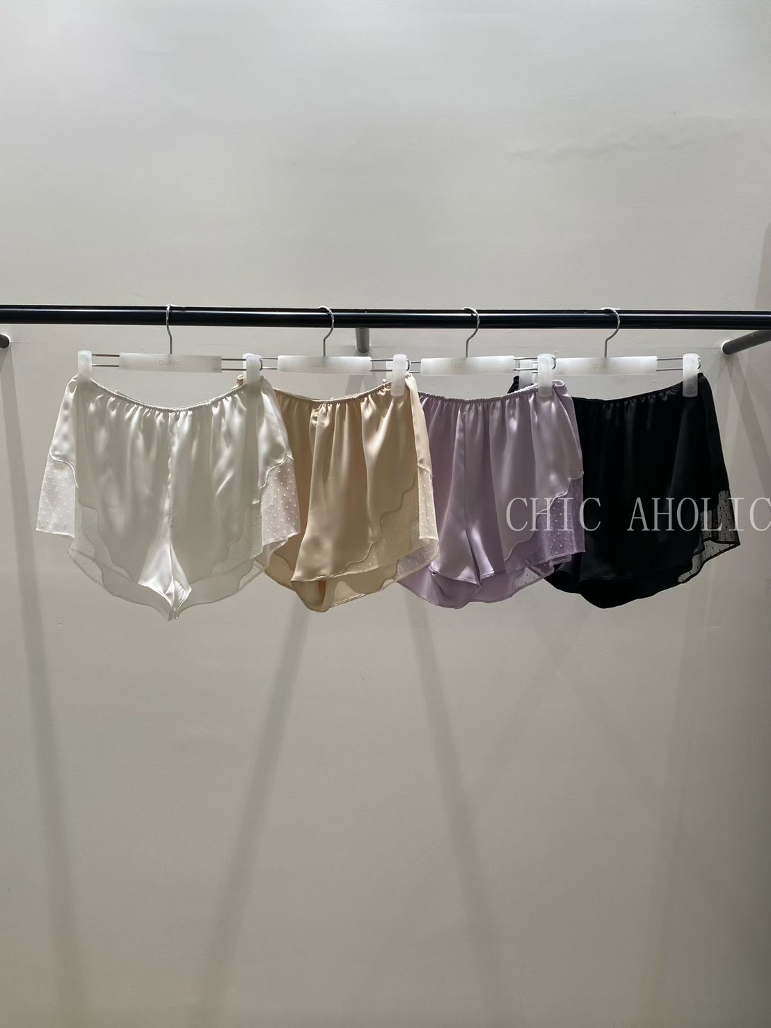 蕾絲緞面V型短褲