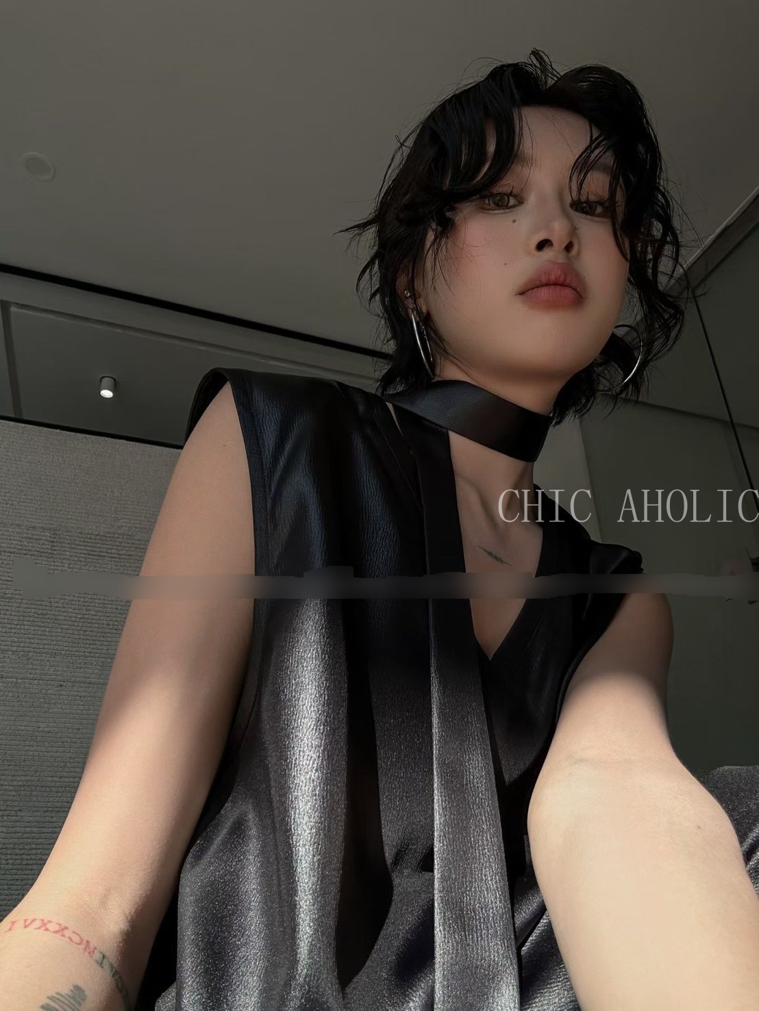 MEE07緞面亮亮繞脖無袖襯衫