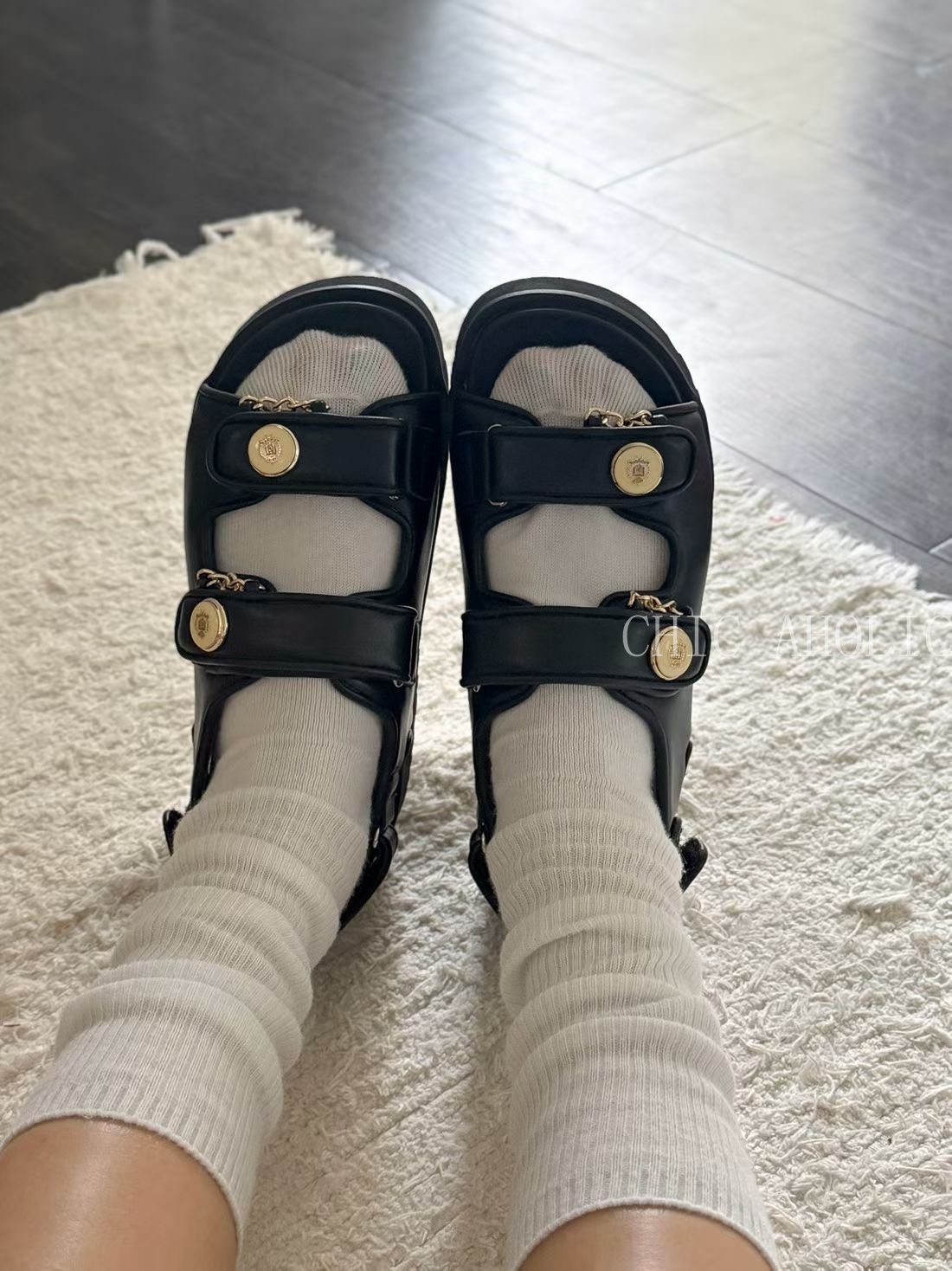 MEE25勳章小香風魔鬼氈涼鞋