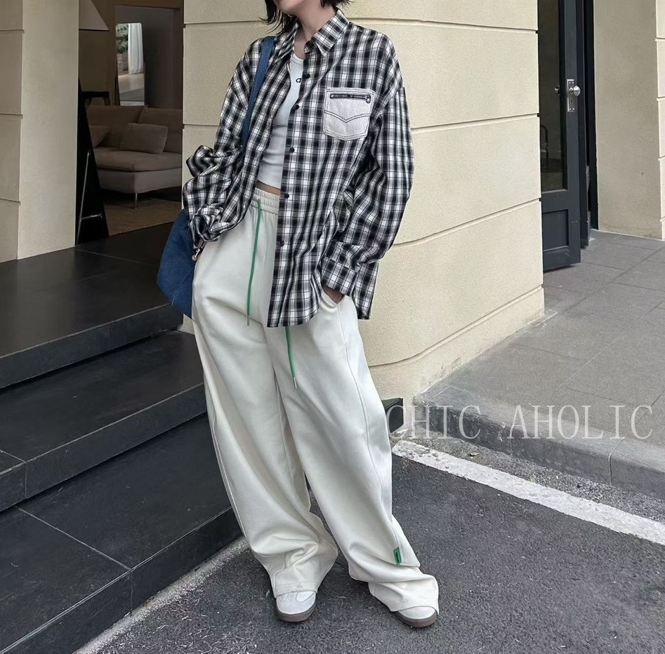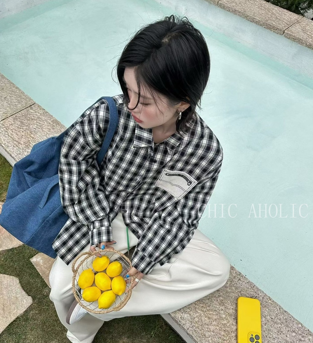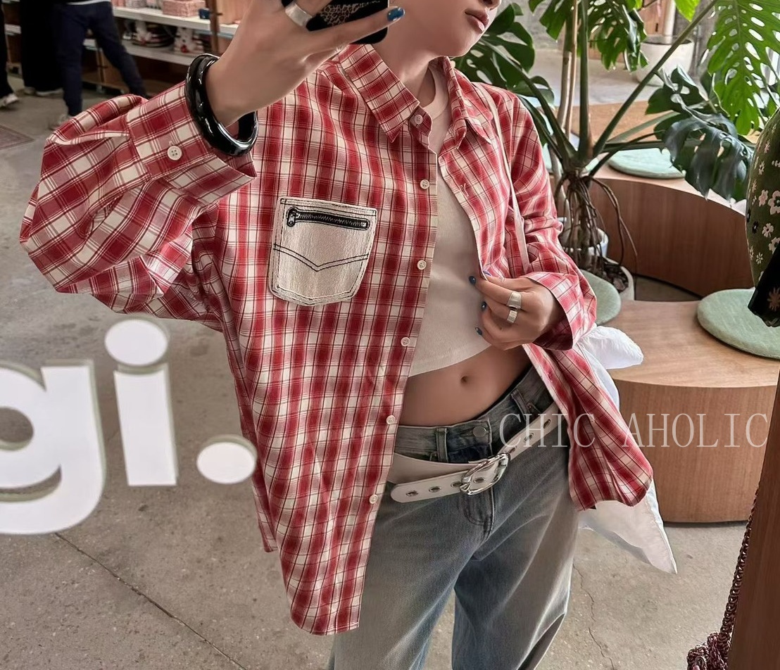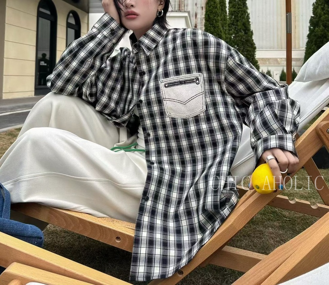 MEE38口袋拉鍊造型格子襯衫