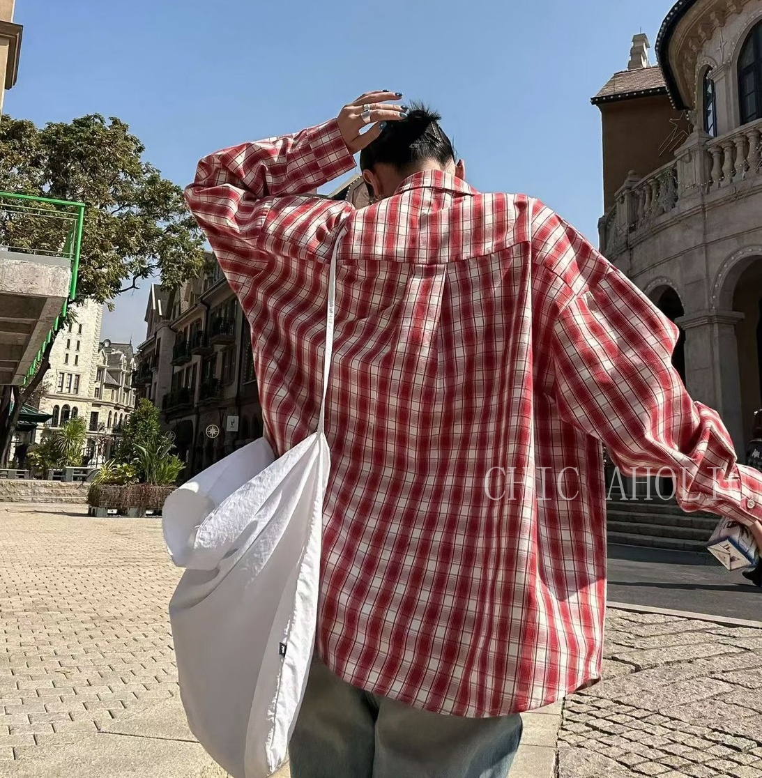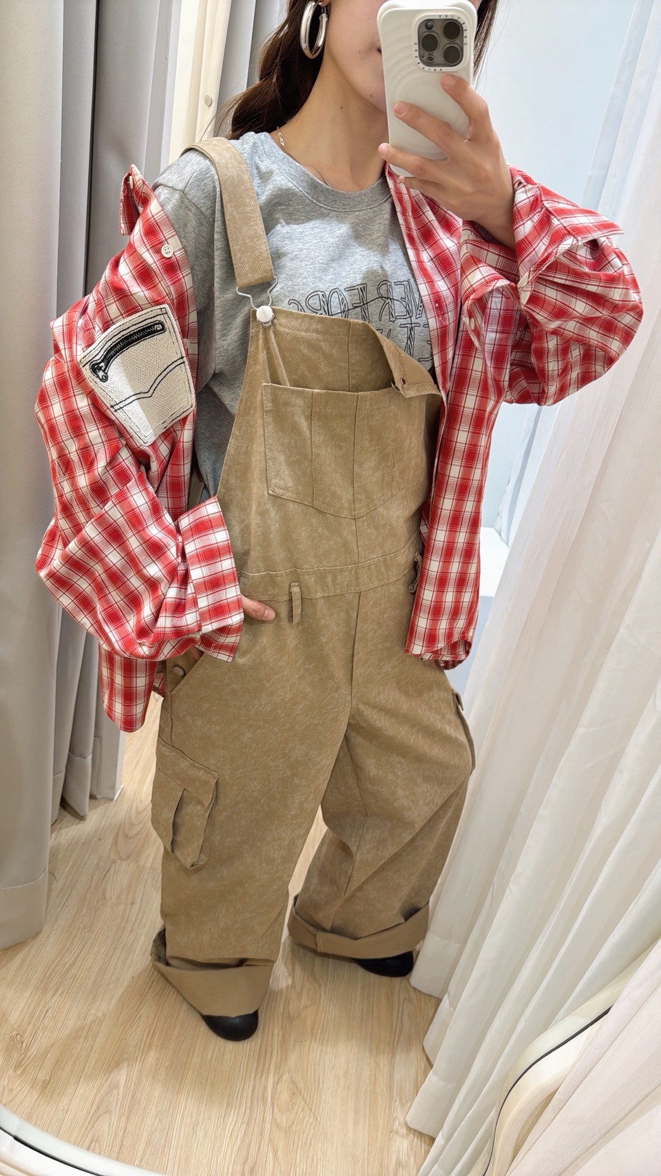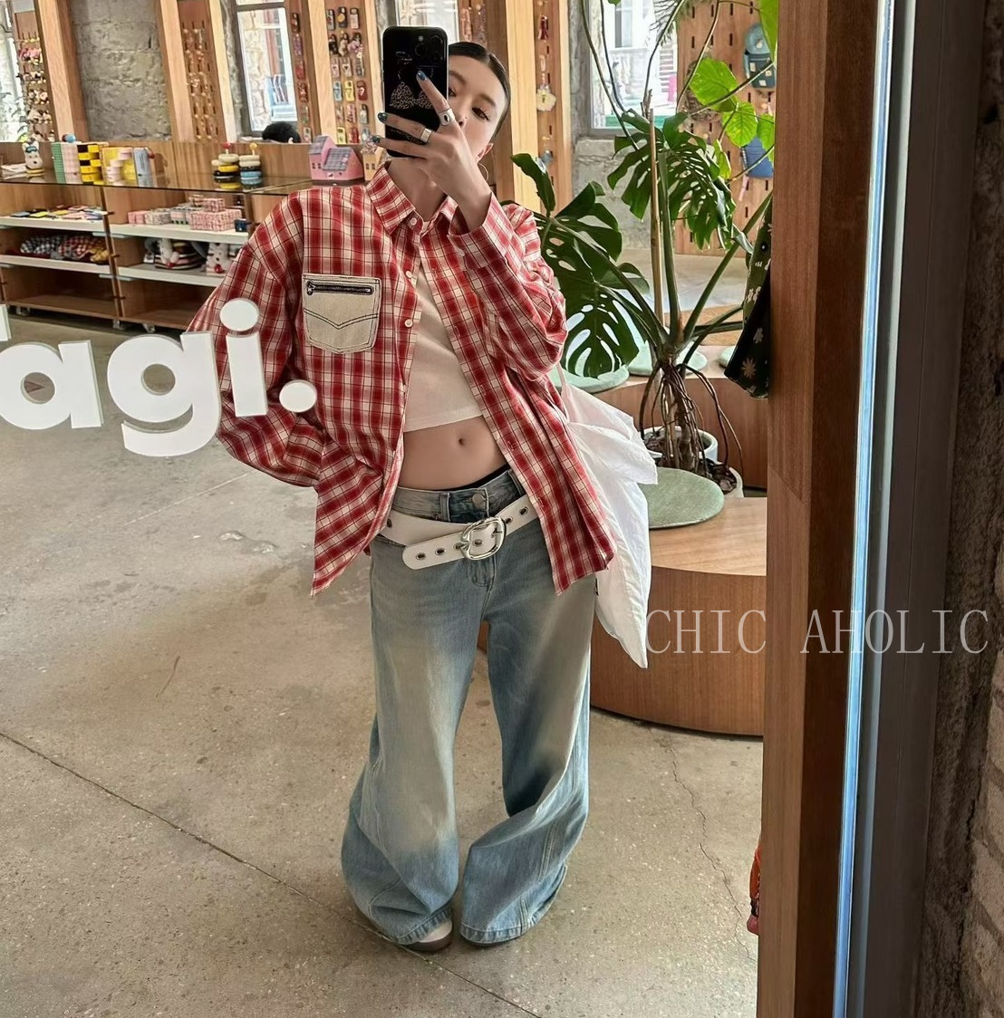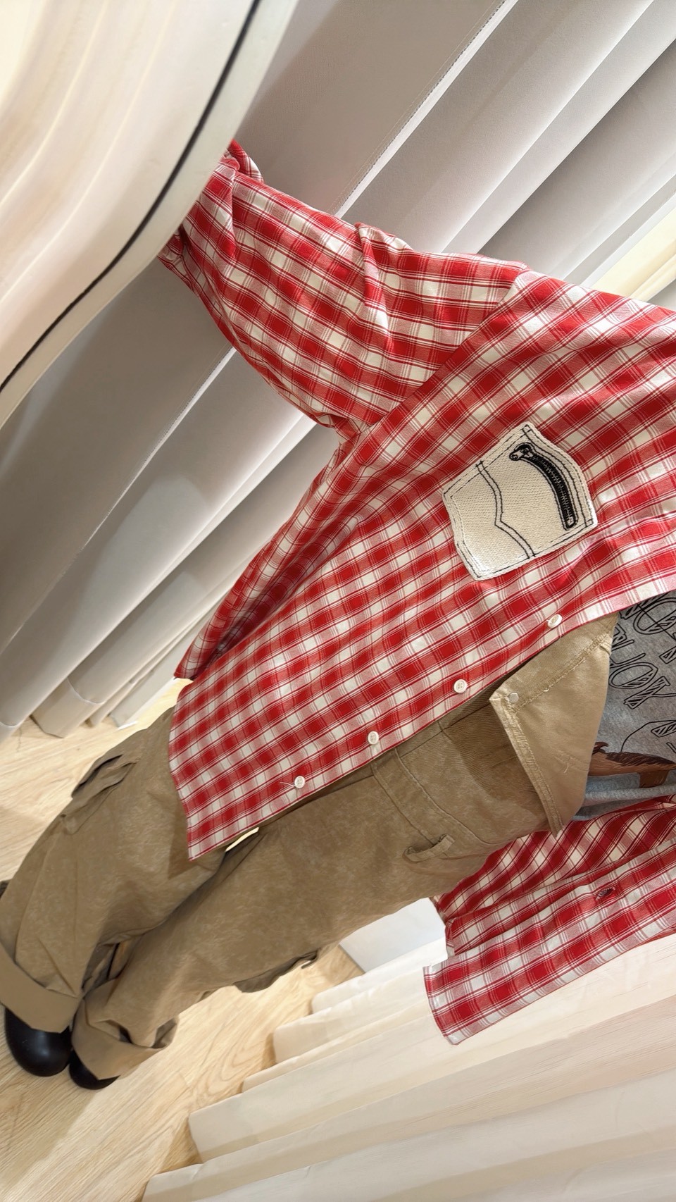 MEE38口袋拉鍊造型格子襯衫