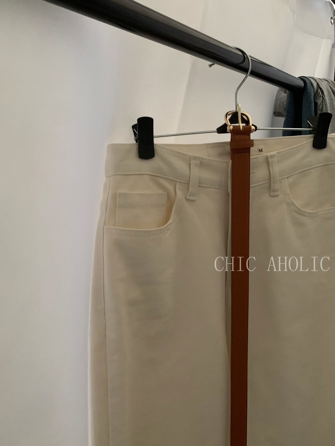 WR53有皮帶沙色A字短裙