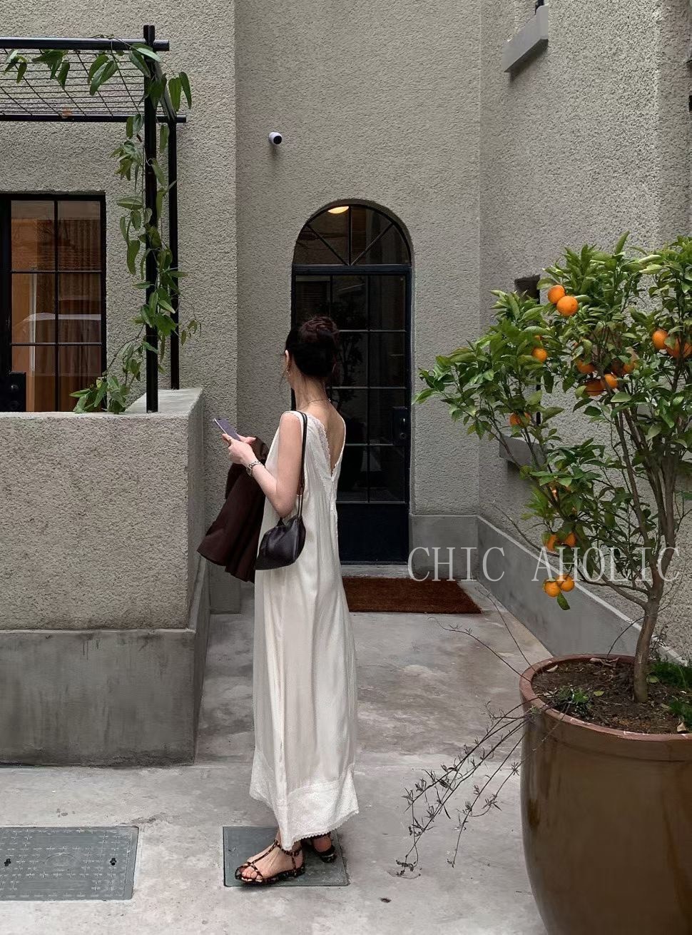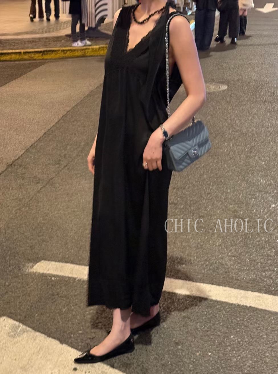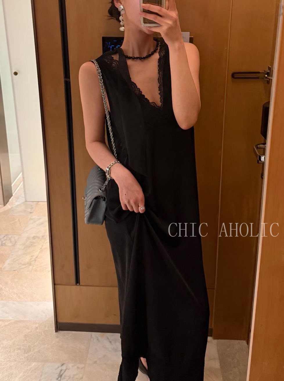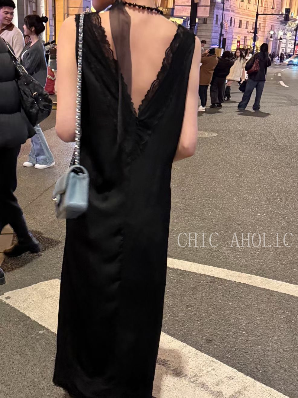 WR34大寬肩V領緞面洋裝