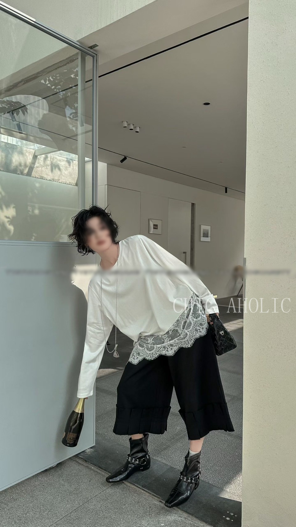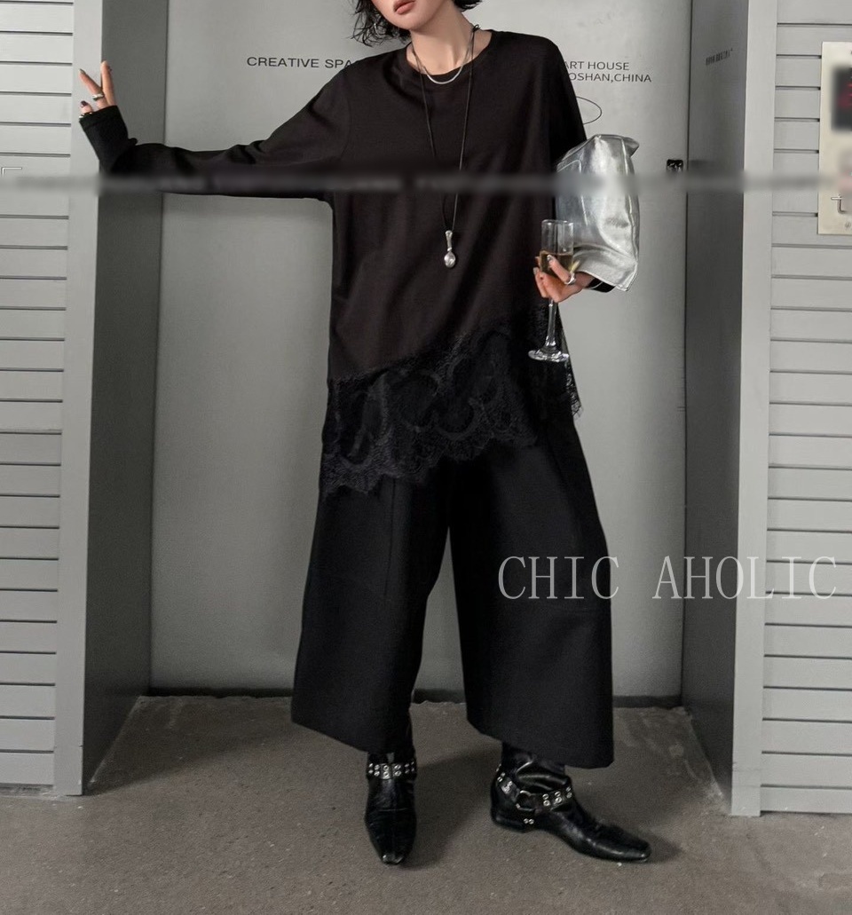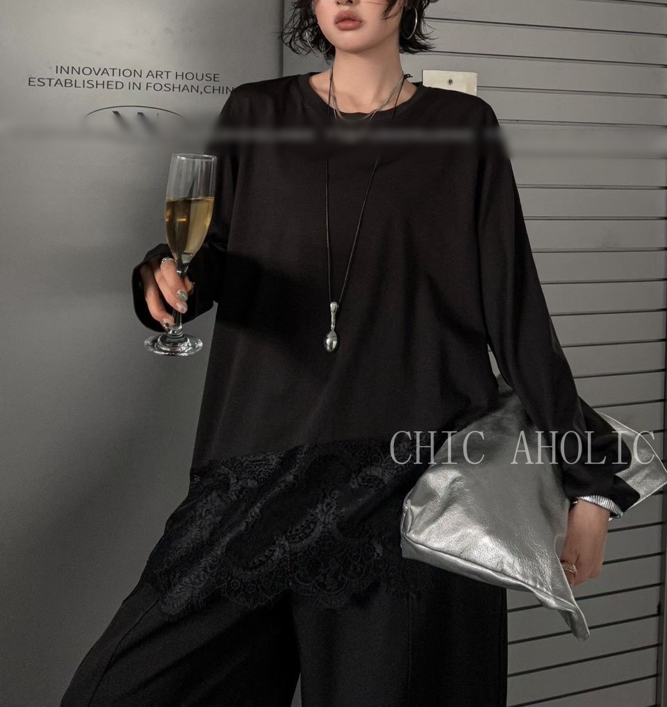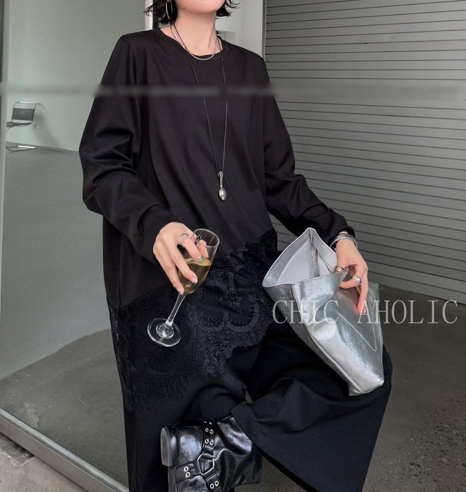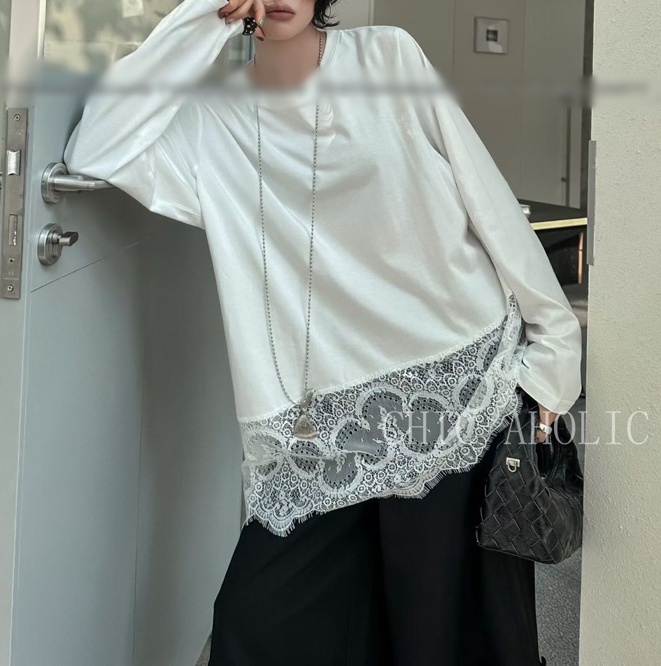 WR46下擺有蕾絲素T上衣