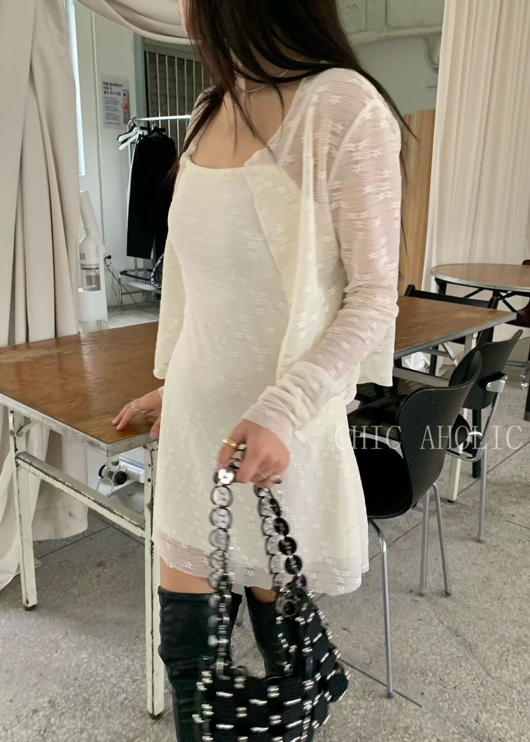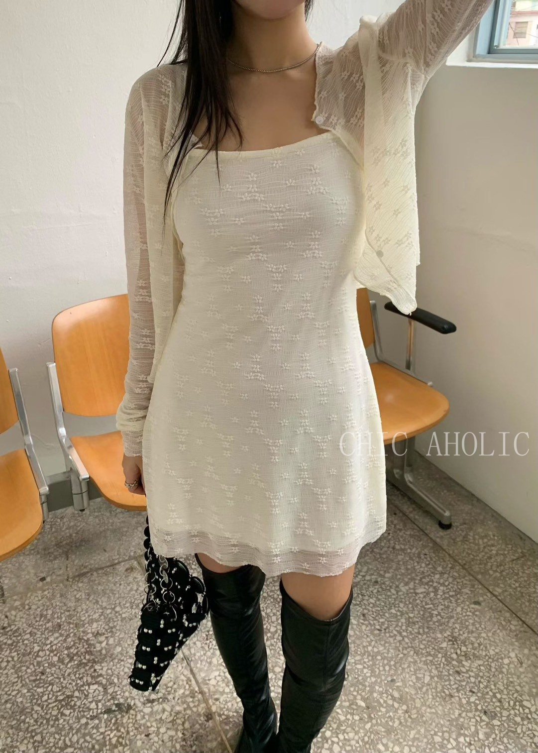 透紗小花細肩短洋+外套SET