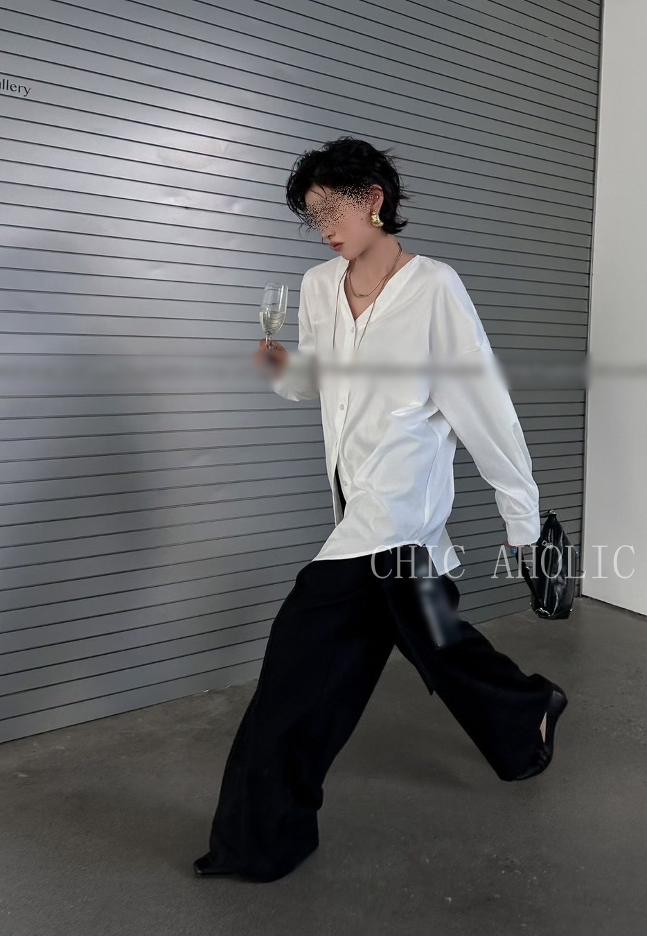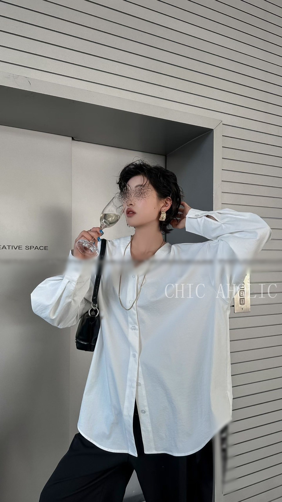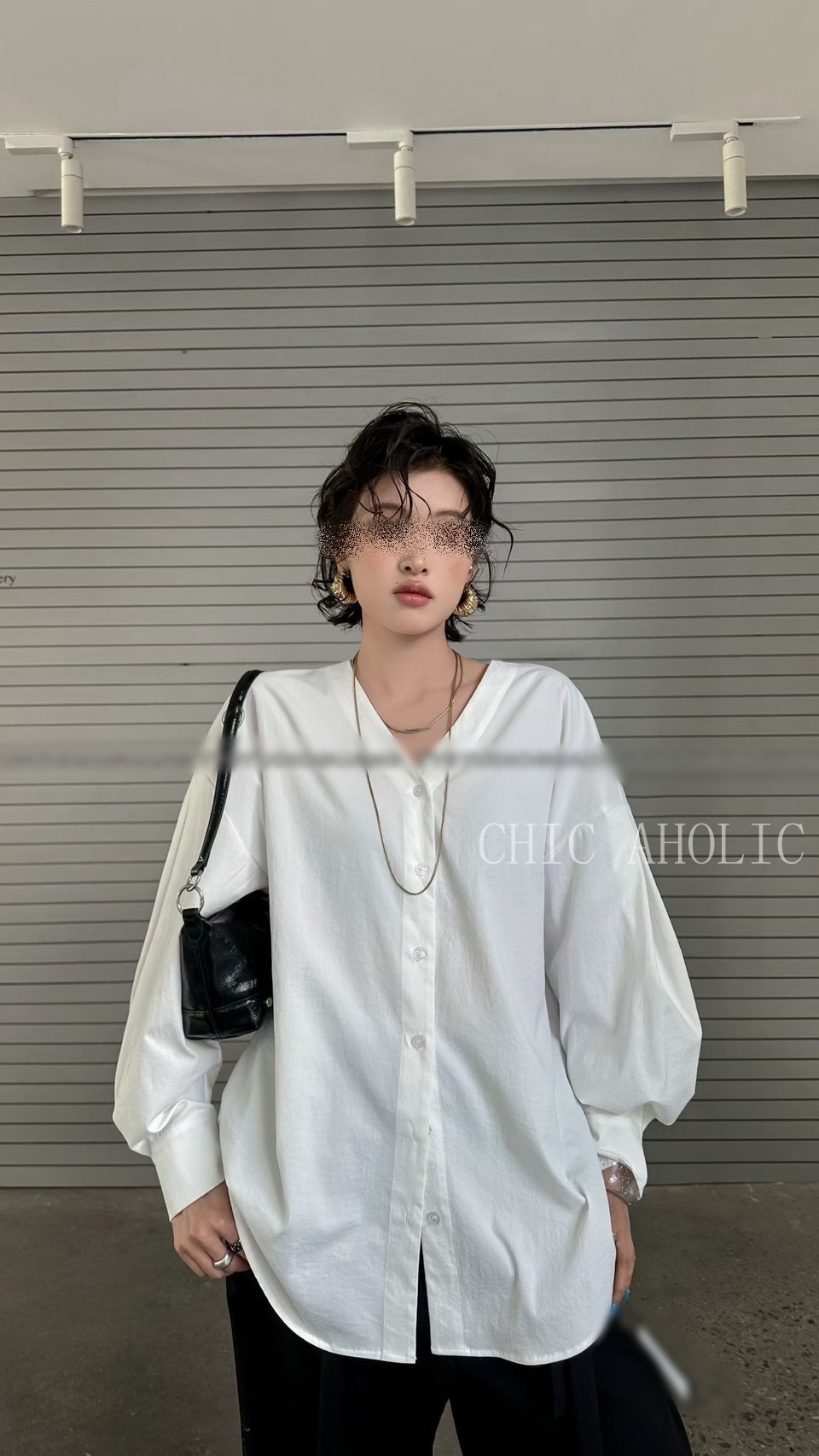 KQ51開襟式的V領7釦襯衫
