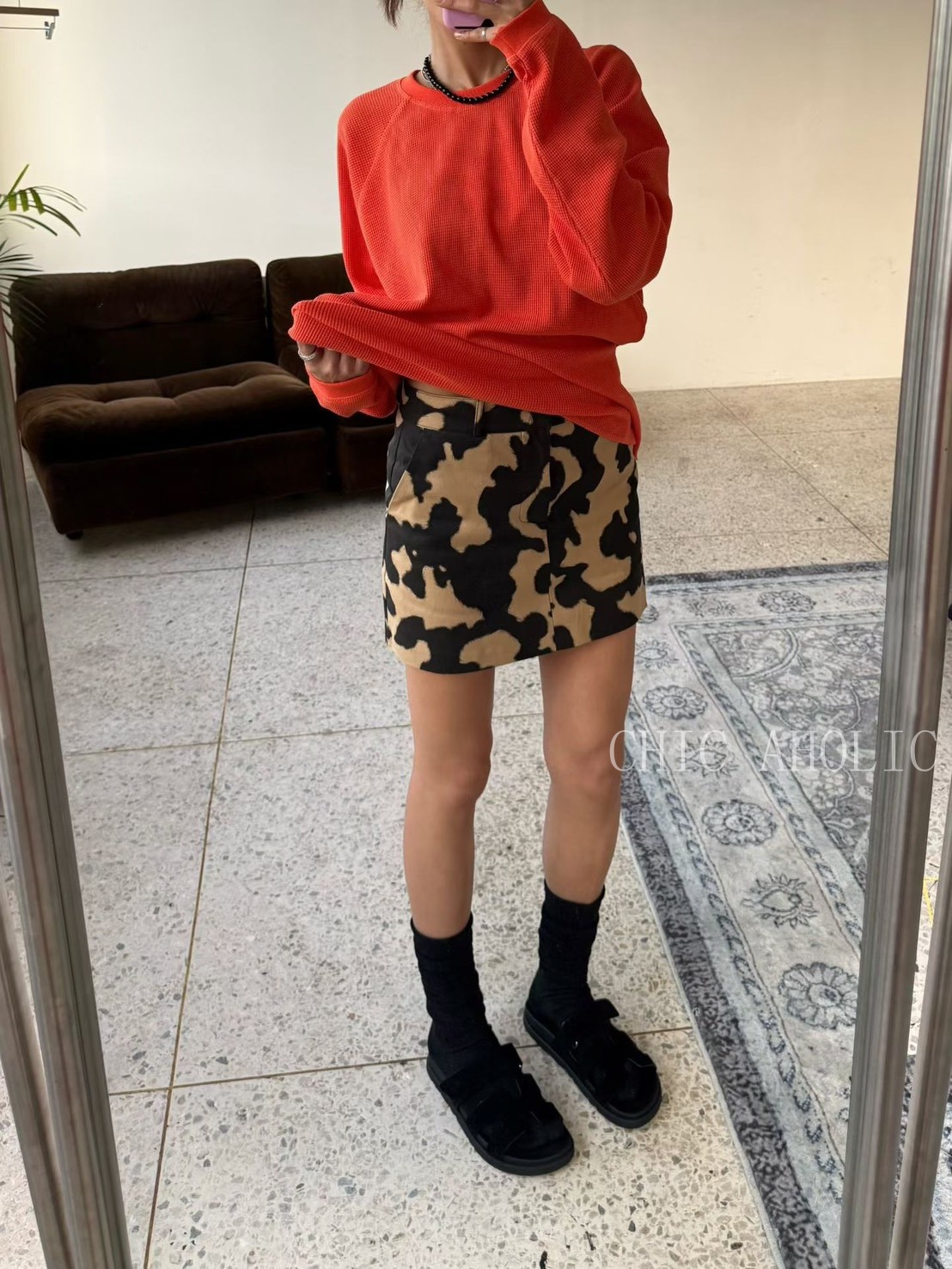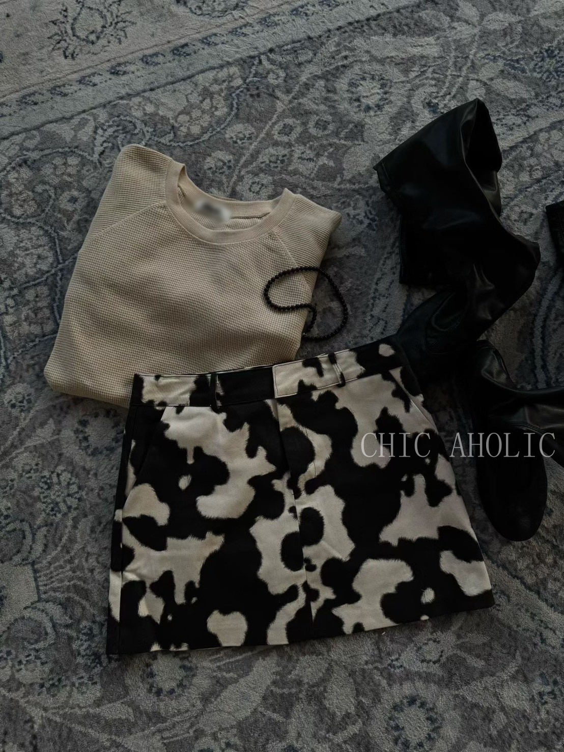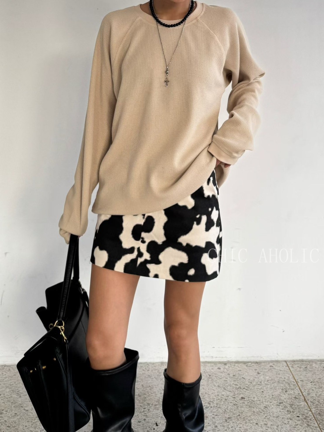 JK03乳牛紋A字短裙
