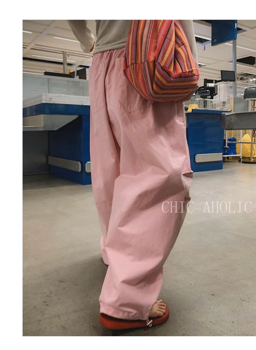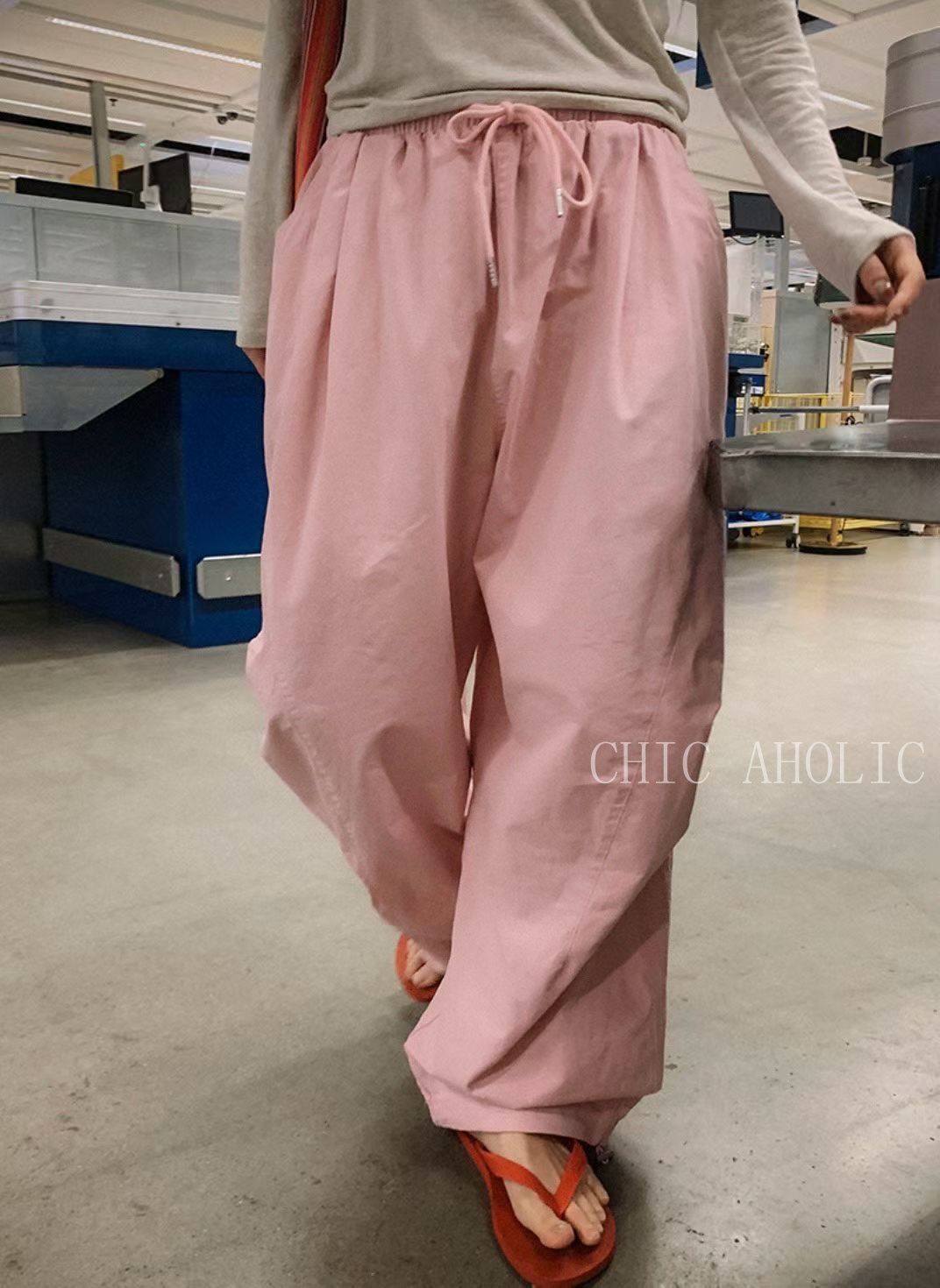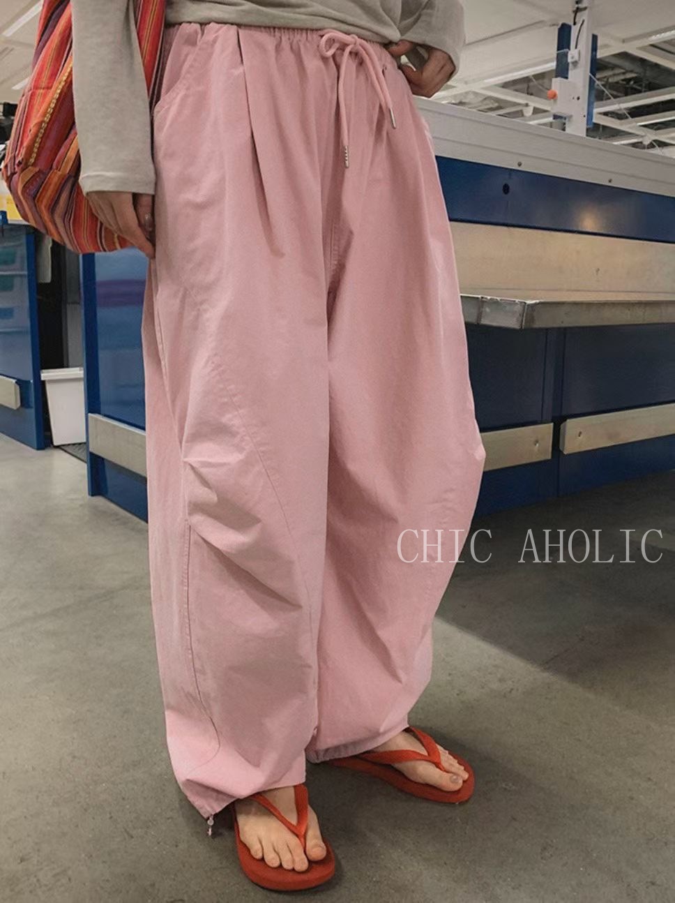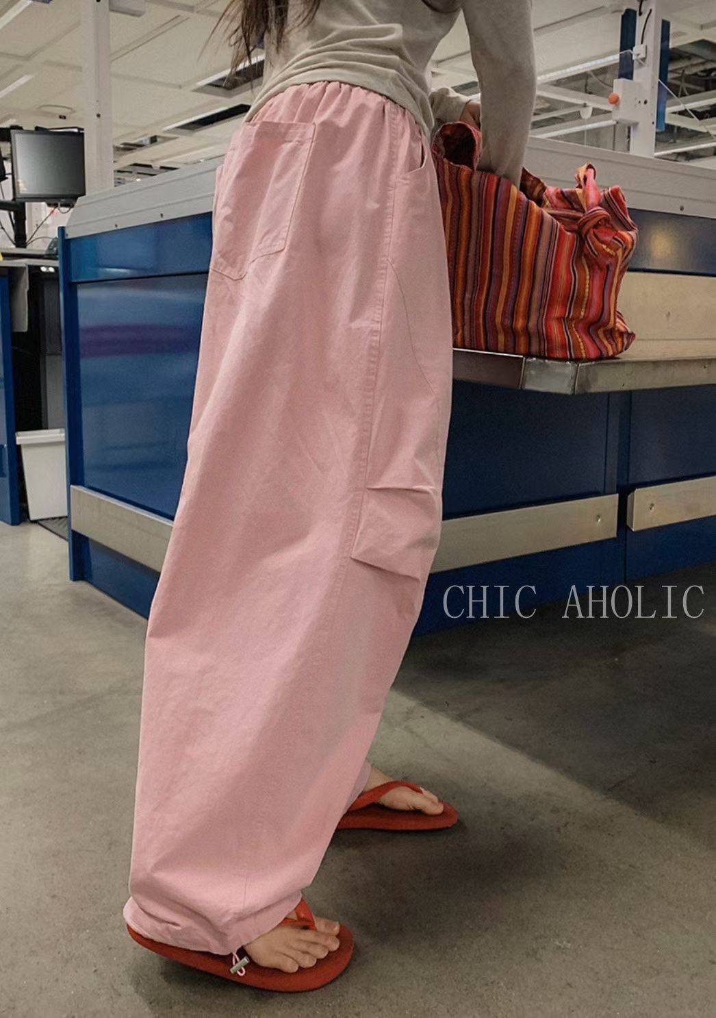 JK68三層摺痕粉色工裝褲