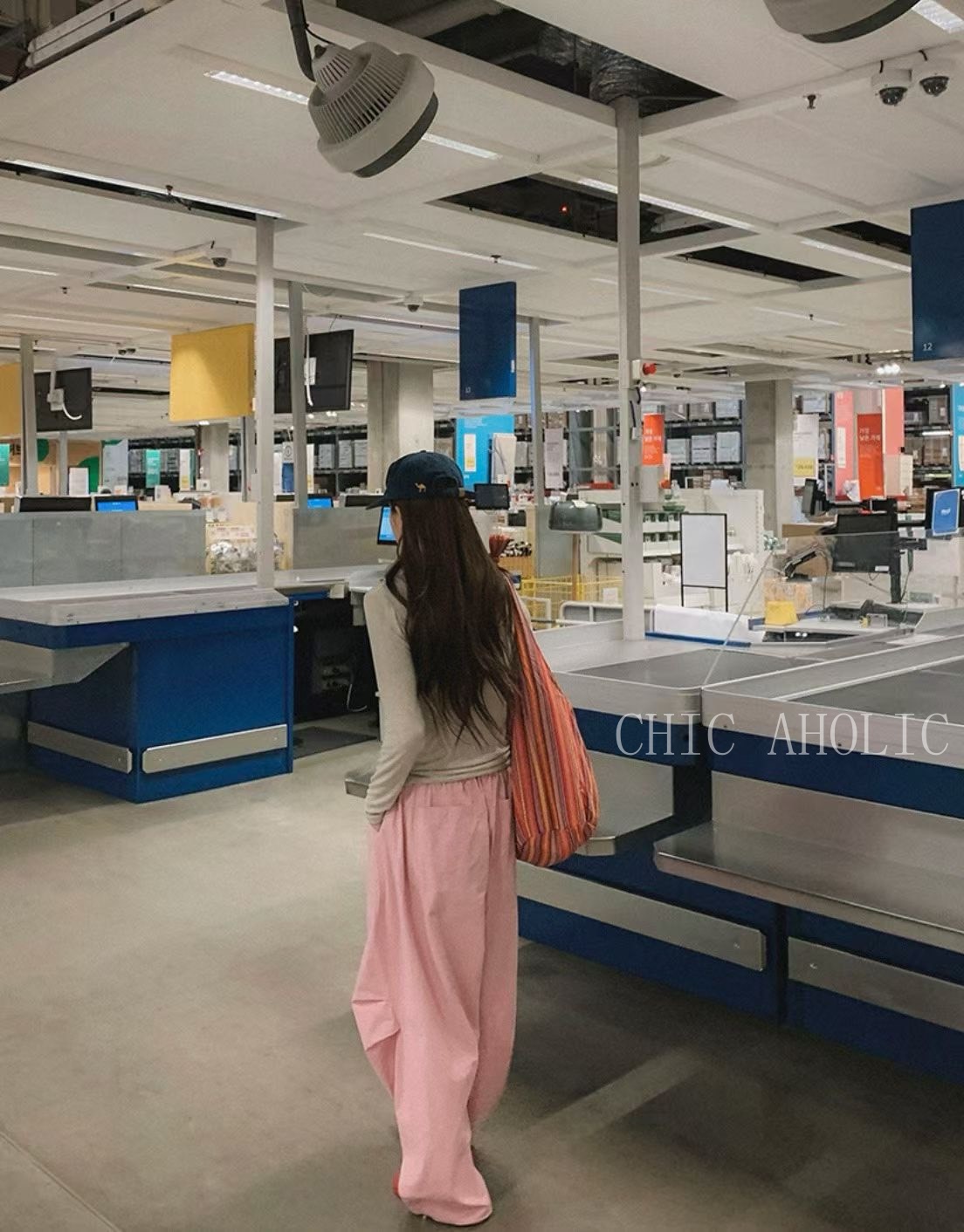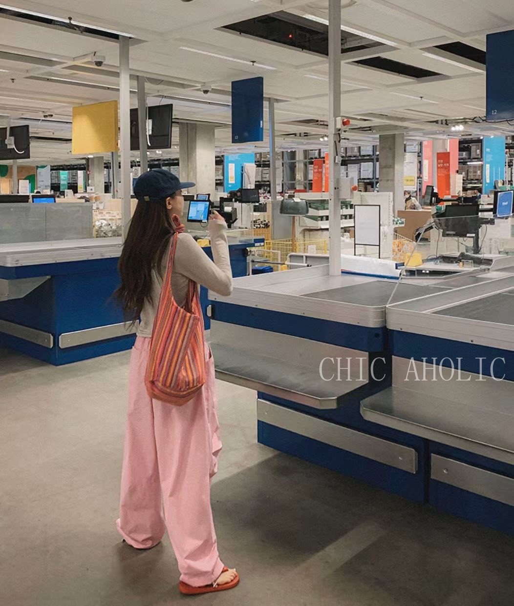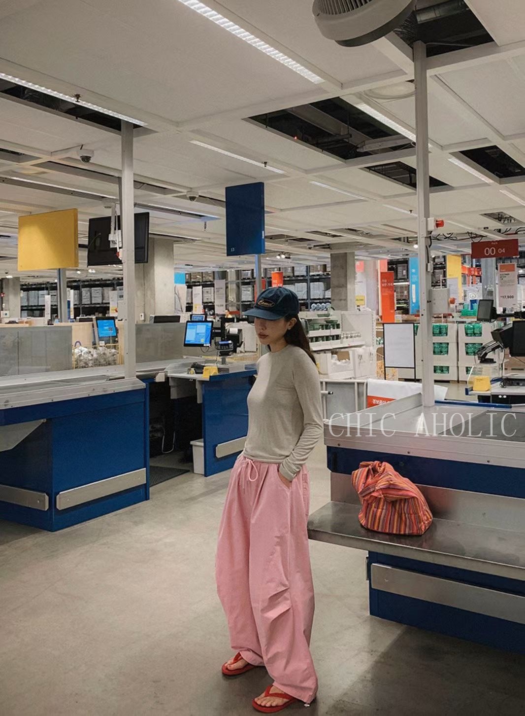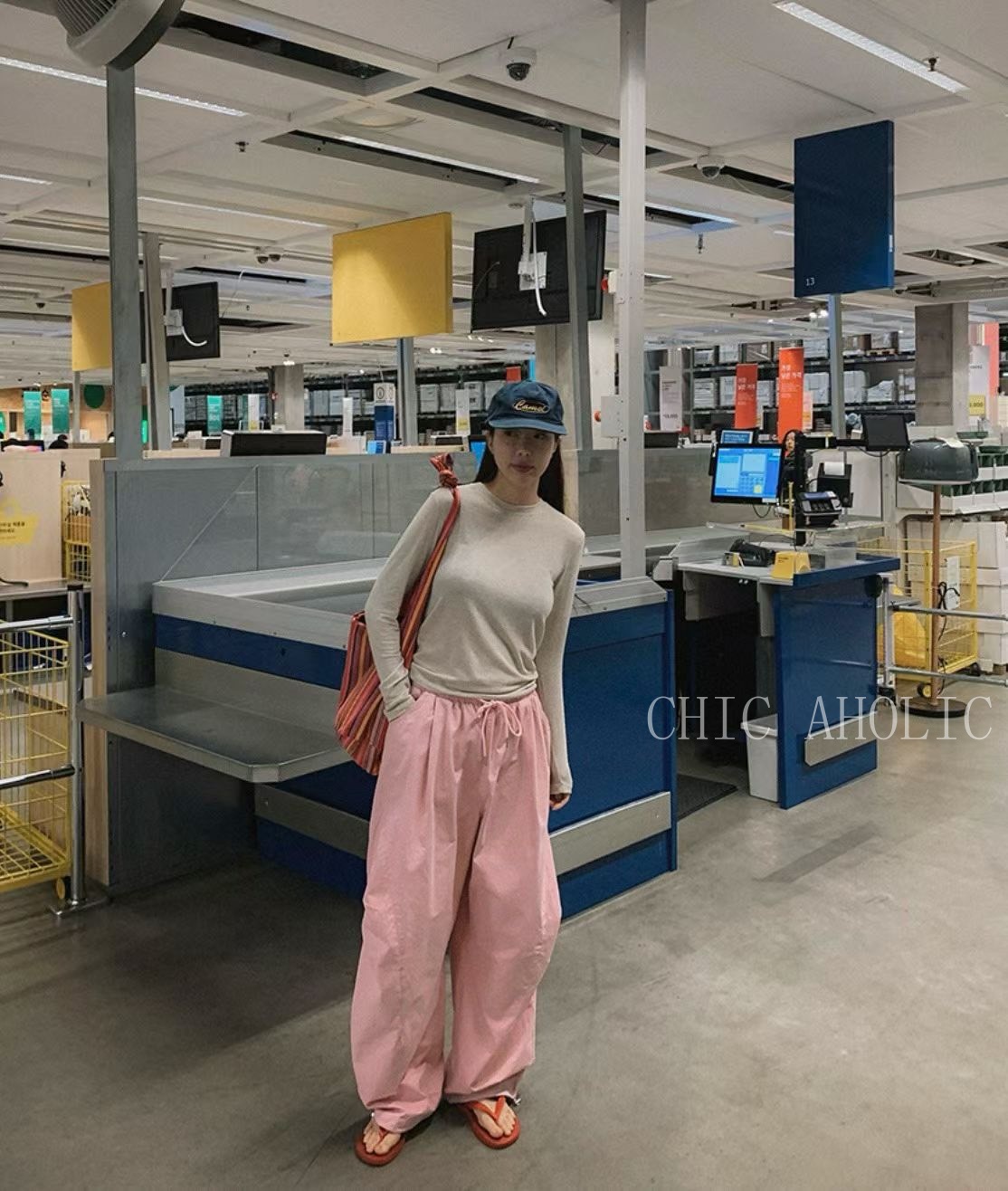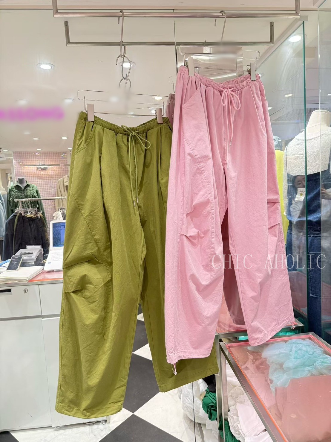 JK68三層摺痕粉色工裝褲