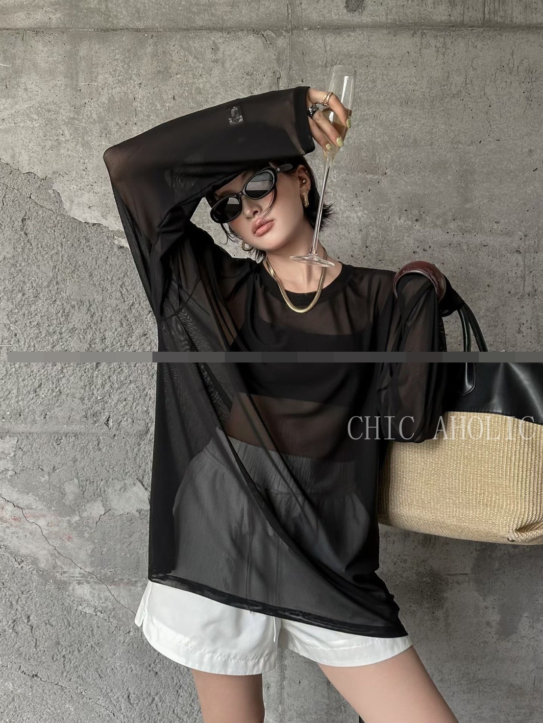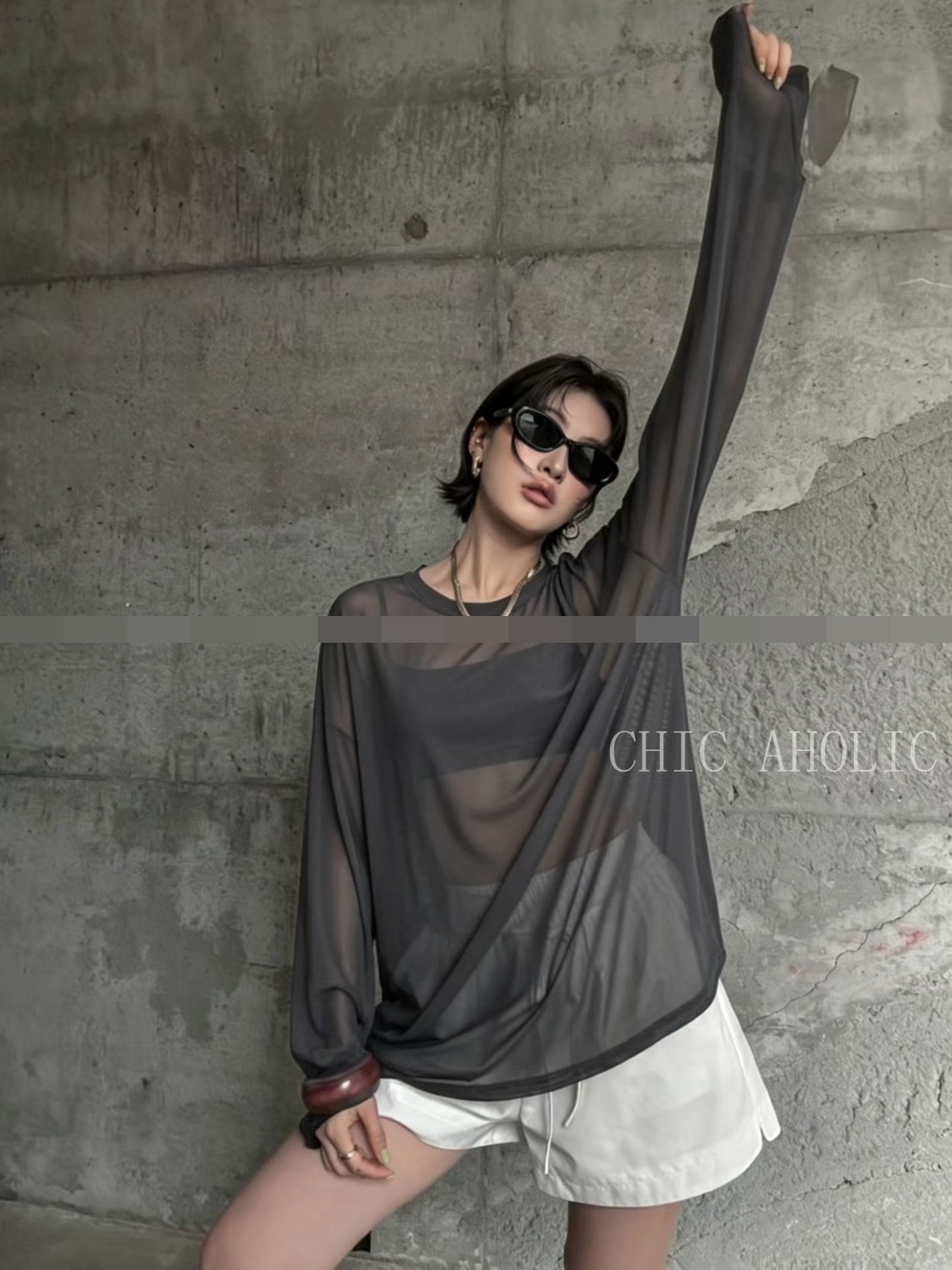 MY56無扣透肌翻領上衣