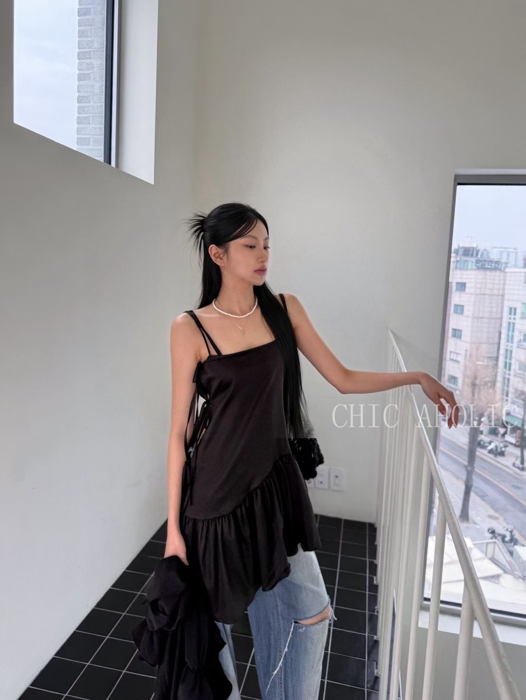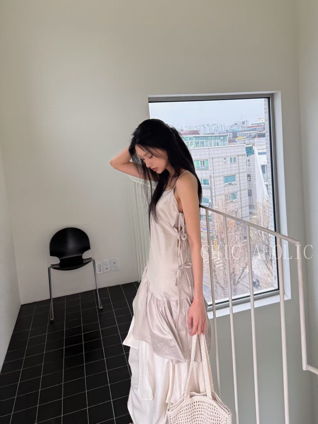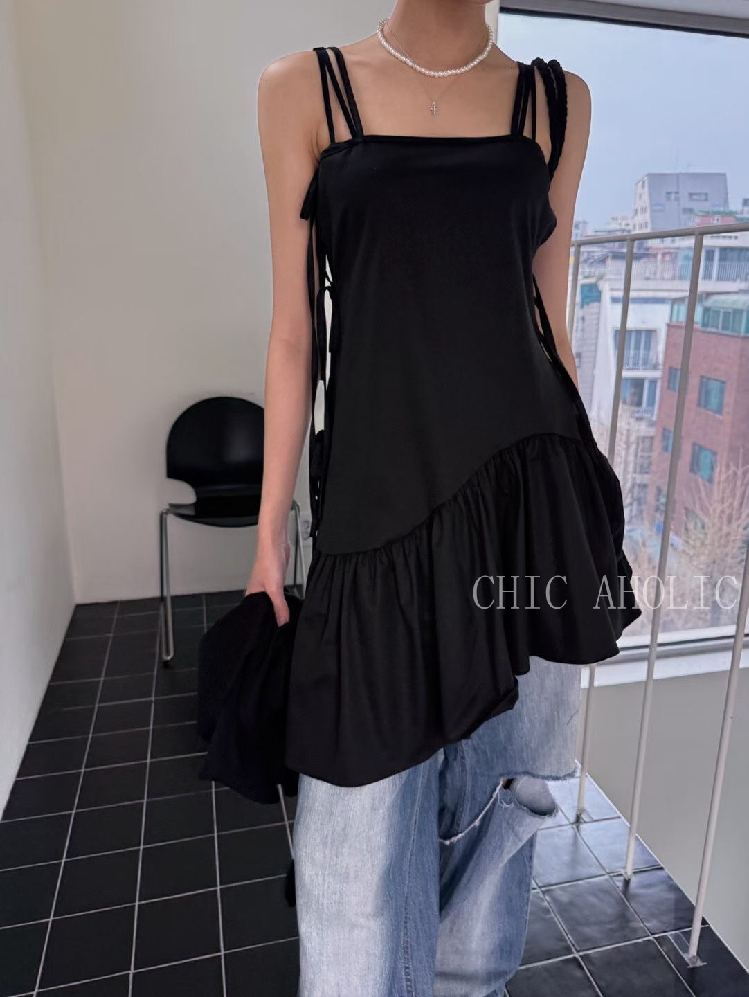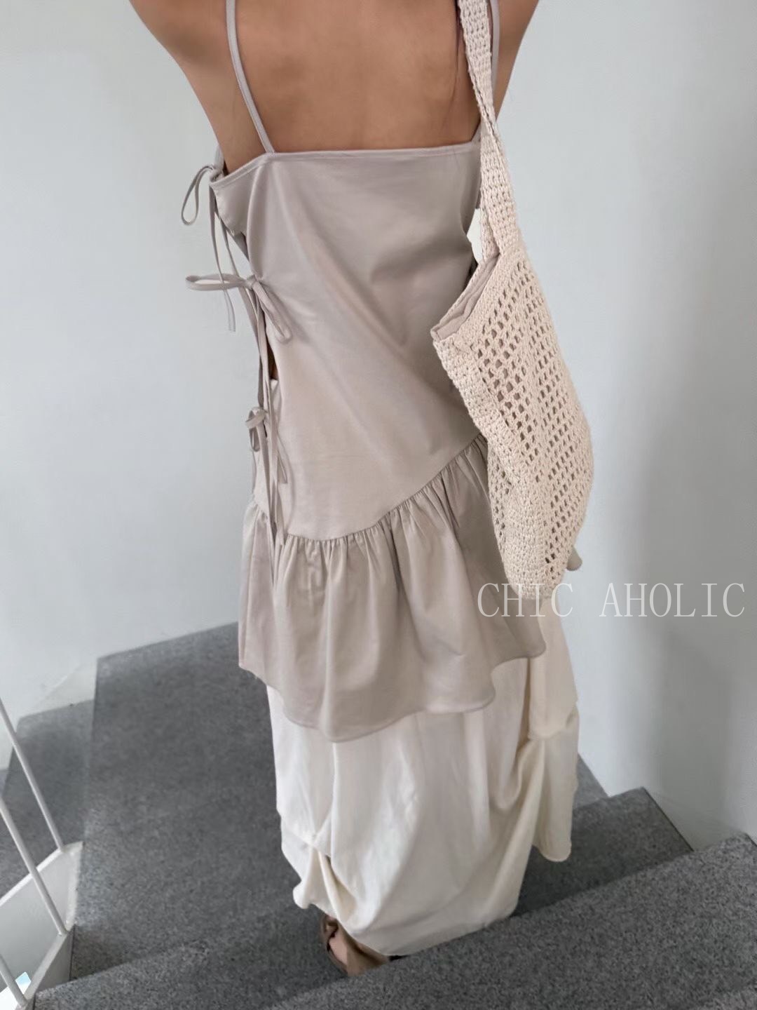 側綁3蝴蝶結細肩帶洋裝