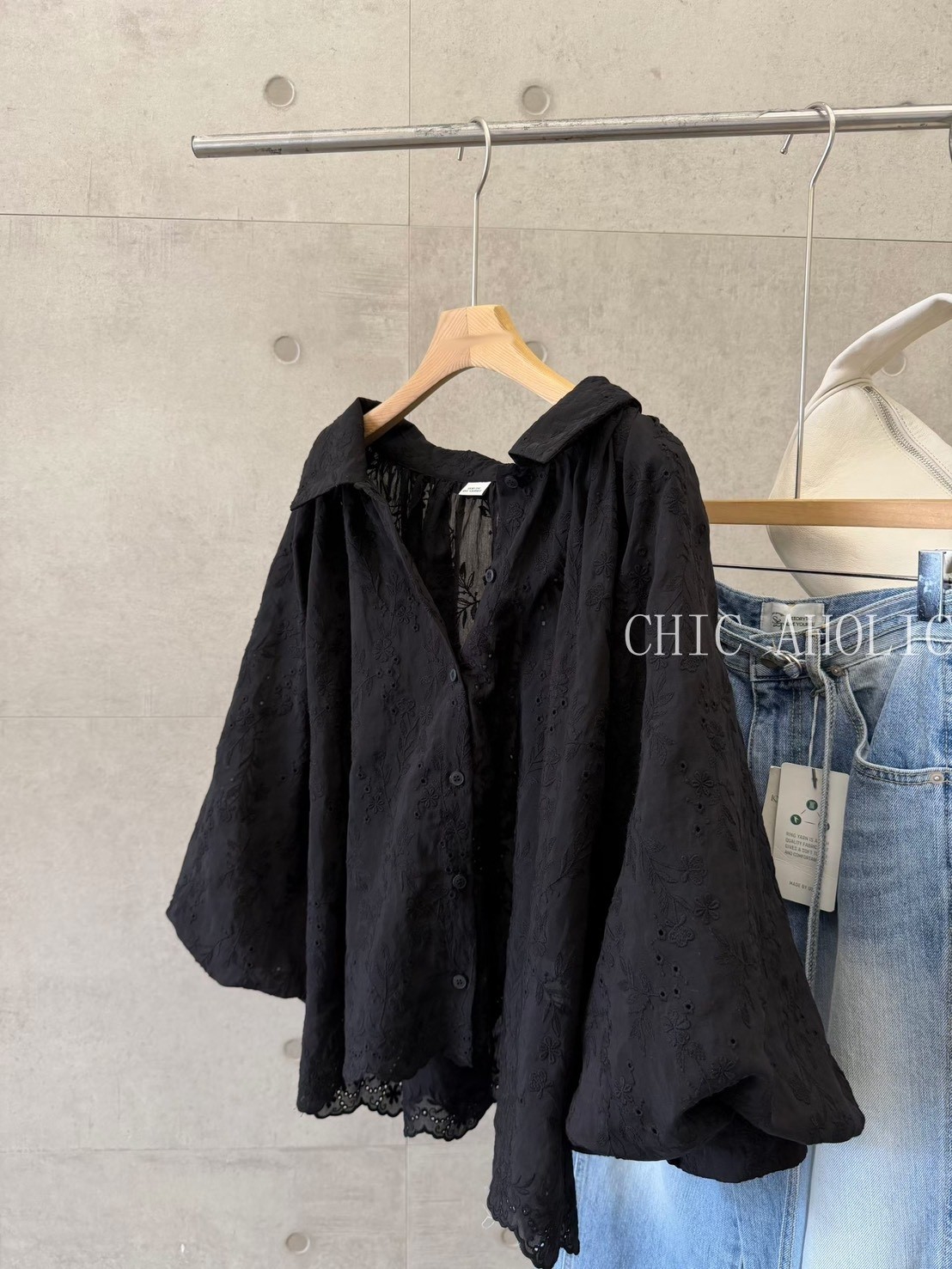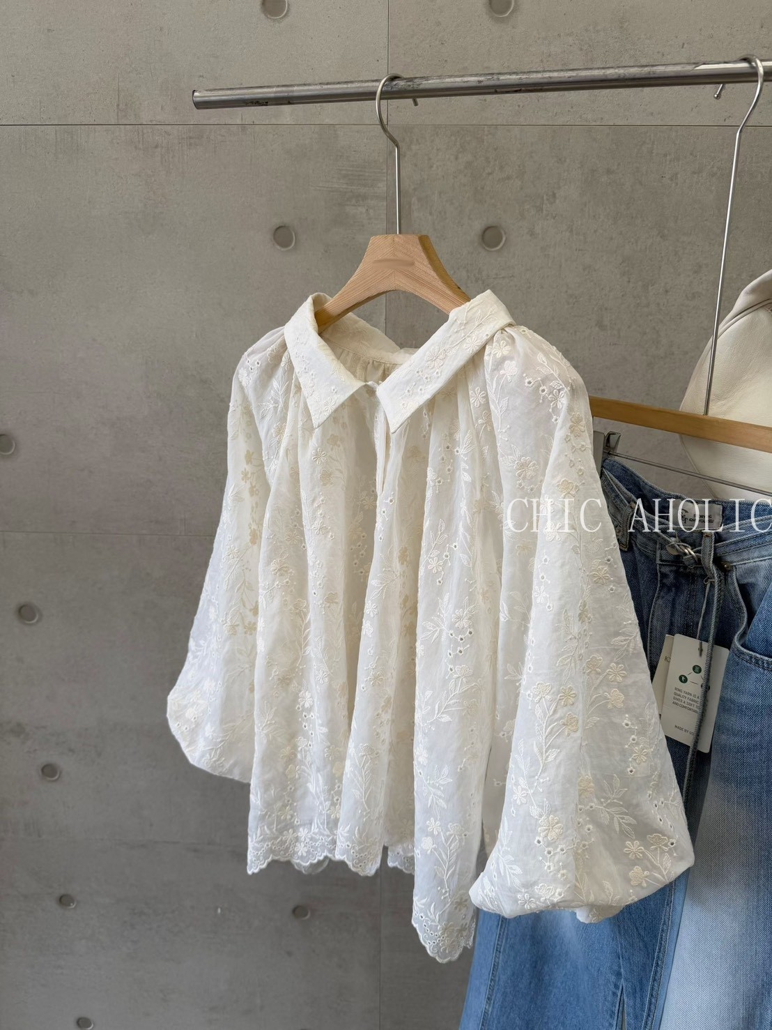 手工蕾絲挺的布料襯衫